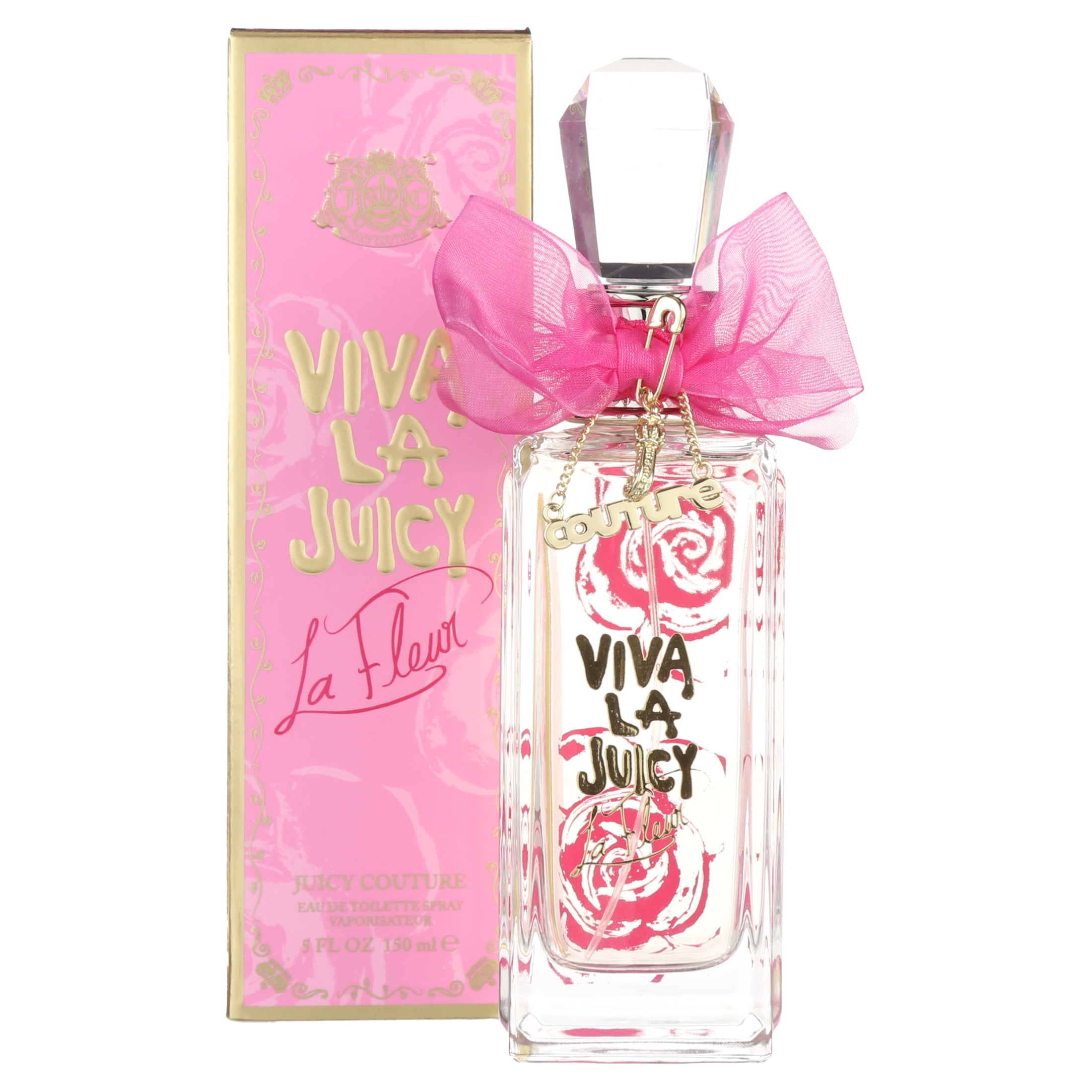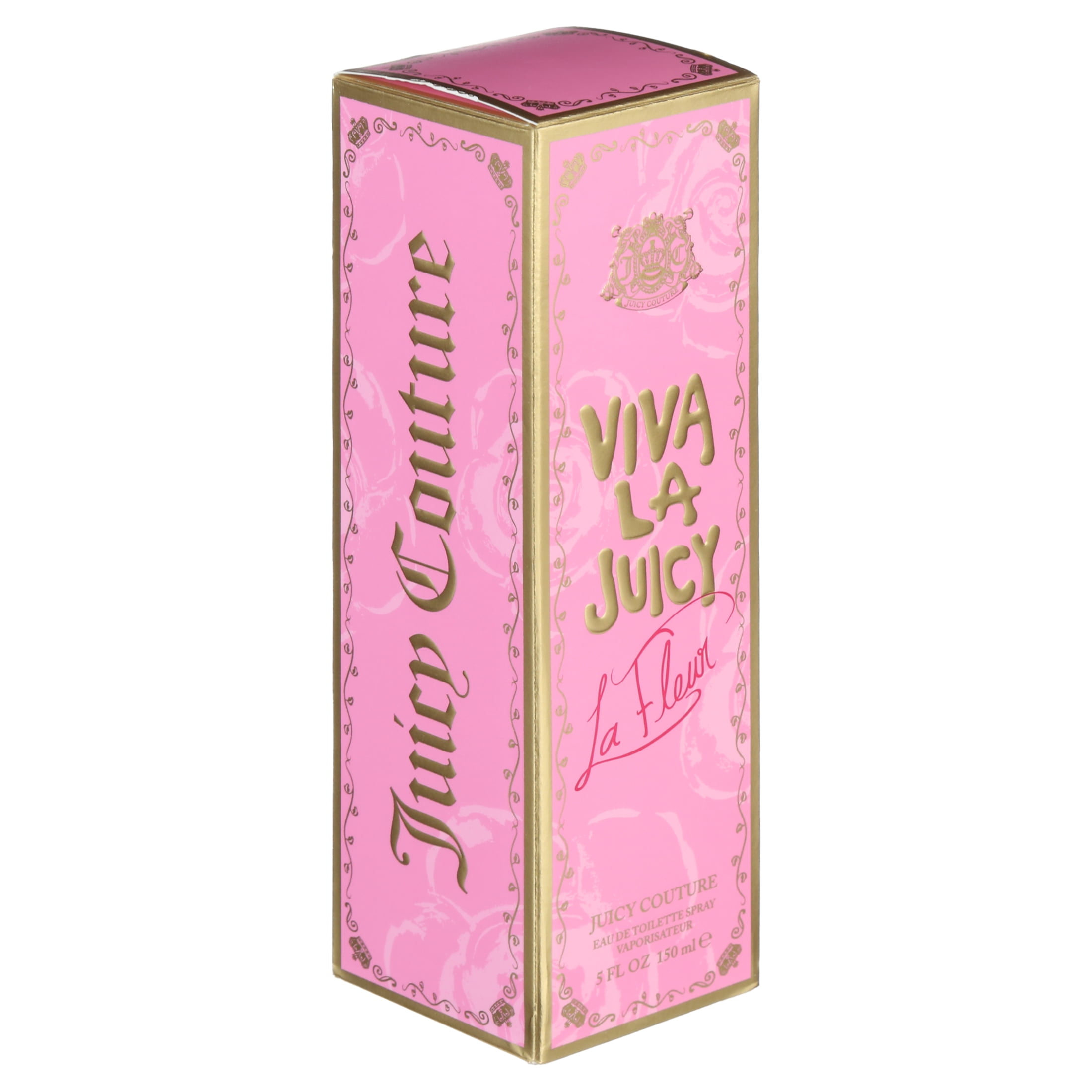 Launched in 2008, ‘Viva La Juicy La Fleur’ by Juicy Couture features a feminine blend of caramel vanilla, praline and sandalwood. This women’s Eau de Toilette is available in a 5-ounce spray. This natural scent is housed in an elegant translucent bottle that conveys the sweet spirit of this fragrance. With a lid that looks like a jewel and a base with painted flowers, the bottle’s design reflects this scent’s fragrant notes. The pink bow tied on the bottle and the couture charm around the bottle provide sophistication. La Fleur Viva La Juicy by Juicy Couture, Eau de Toilette for Women, 5 oz