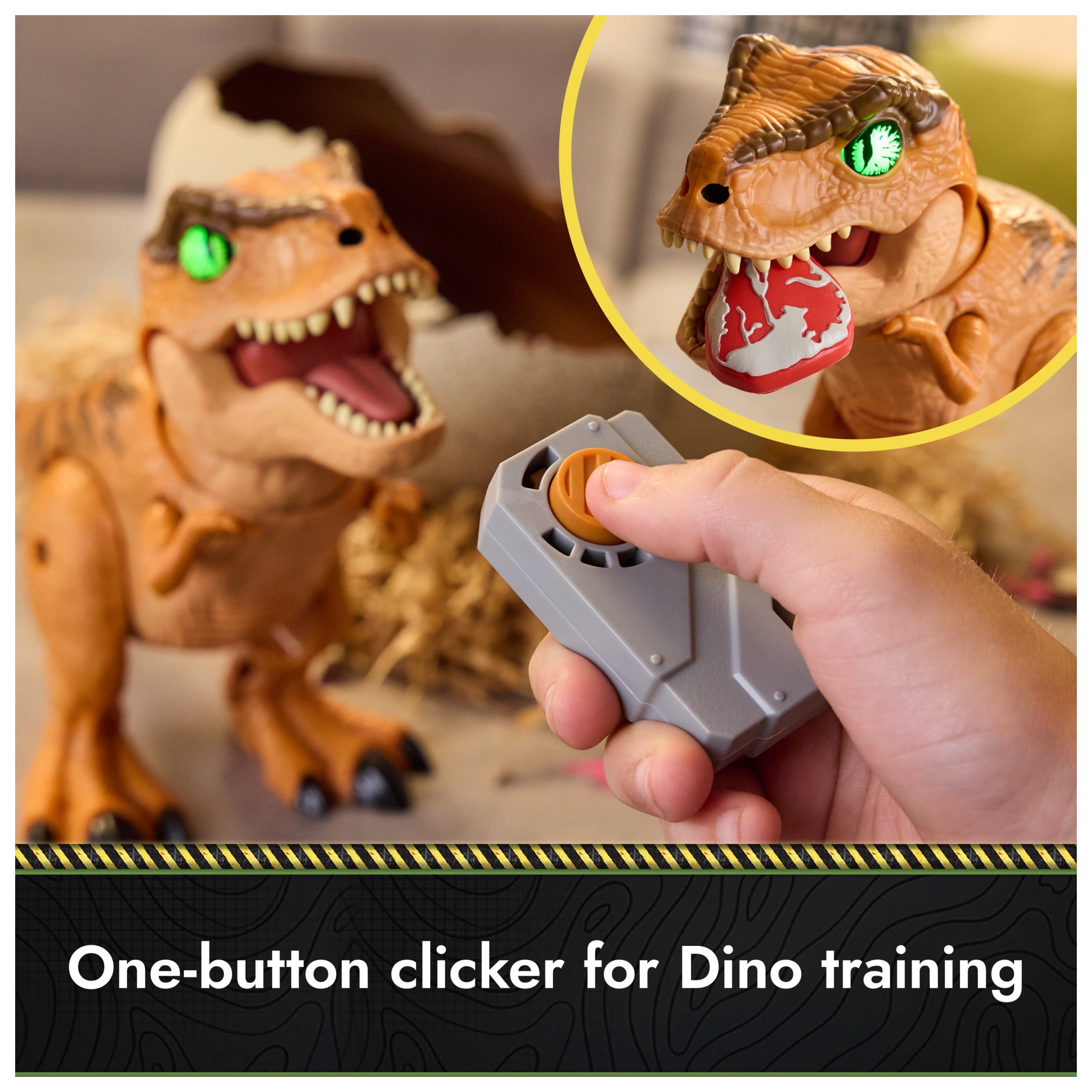 Hatch and Train your own baby dinosaur with the Primal Hatch T-Rex! Bring your dino to life as you watch it hatch for the very first time! This dino toy for boys and girls lets you watch your baby T-Rex hatch, and then decide whether it grows into a friend, or a fierce predator! With articulated features, more than 100 sounds and reactions and so interactive play modes, the Primal Hatch T-Rex is bound to keep your little Jurassic Park fan entertained for hours of fun! To start, hatch the T-Rex by tapping on the egg repeatedly, then watch in amazement as the egg begins to crack, and your baby dinosaur emerges through the gooey membrane of its egg! Use the clicker and food accessories to train the fierce dino into becoming a friend, or watch it grow into a dangerous predator! You decide what your baby dinosaur becomes! The Primal Hatch T-Rex is a fantastic addition to your kids collection of cool toys, dinosaur toys and Jurassic toys! Add it to your wish list for holiday toys, or birthday toys for boys and girls aged 5 & up!