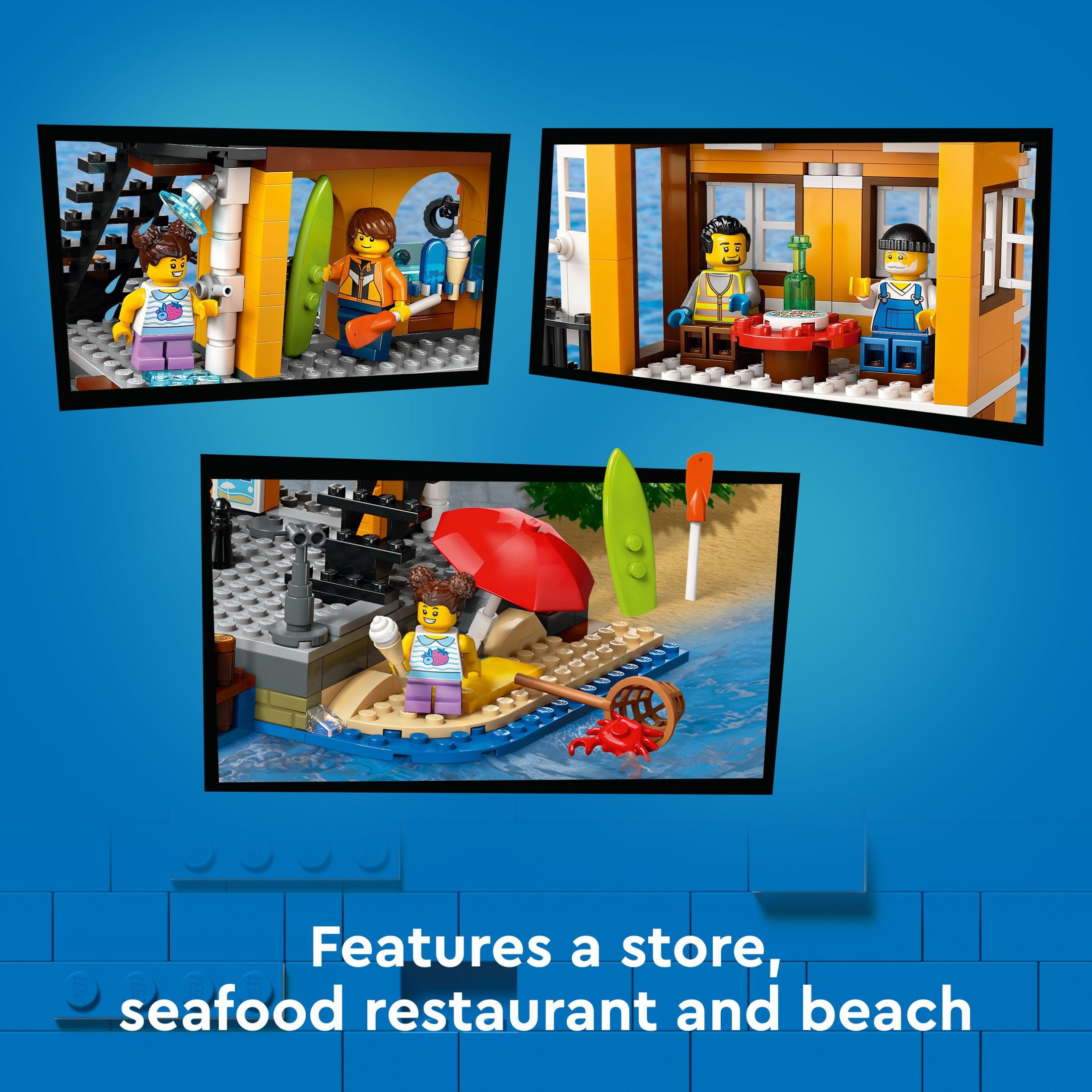 Bring a fun seaside vibe to kids’ play with this LEGO City Seaside Harbor with Cargo Ship toy building set (60422) for ages 8 and up. Kids can use the toy crane to lift containers from the LEGO ship and enjoy the harbor’s tourist area complete with a store, seafood restaurant and beach. The set also includes a smaller toy boat and a water scooter, plus 8 minifigures for role play and storytelling. This creative building toy includes a step-by-step printed building guide and 3D instructions in the LEGO Builder app – a digital building companion with intuitive zoom and rotate tools that enable kids to visualize models from all angles as they build. LEGO City sets feature cool vehicles, realistic structures and fun characters that inspire without limits. Kids can add this LEGO City set to others (sold separately) from the LEGO City range to expand the world of play possibilities. Contains 1,226 pieces.