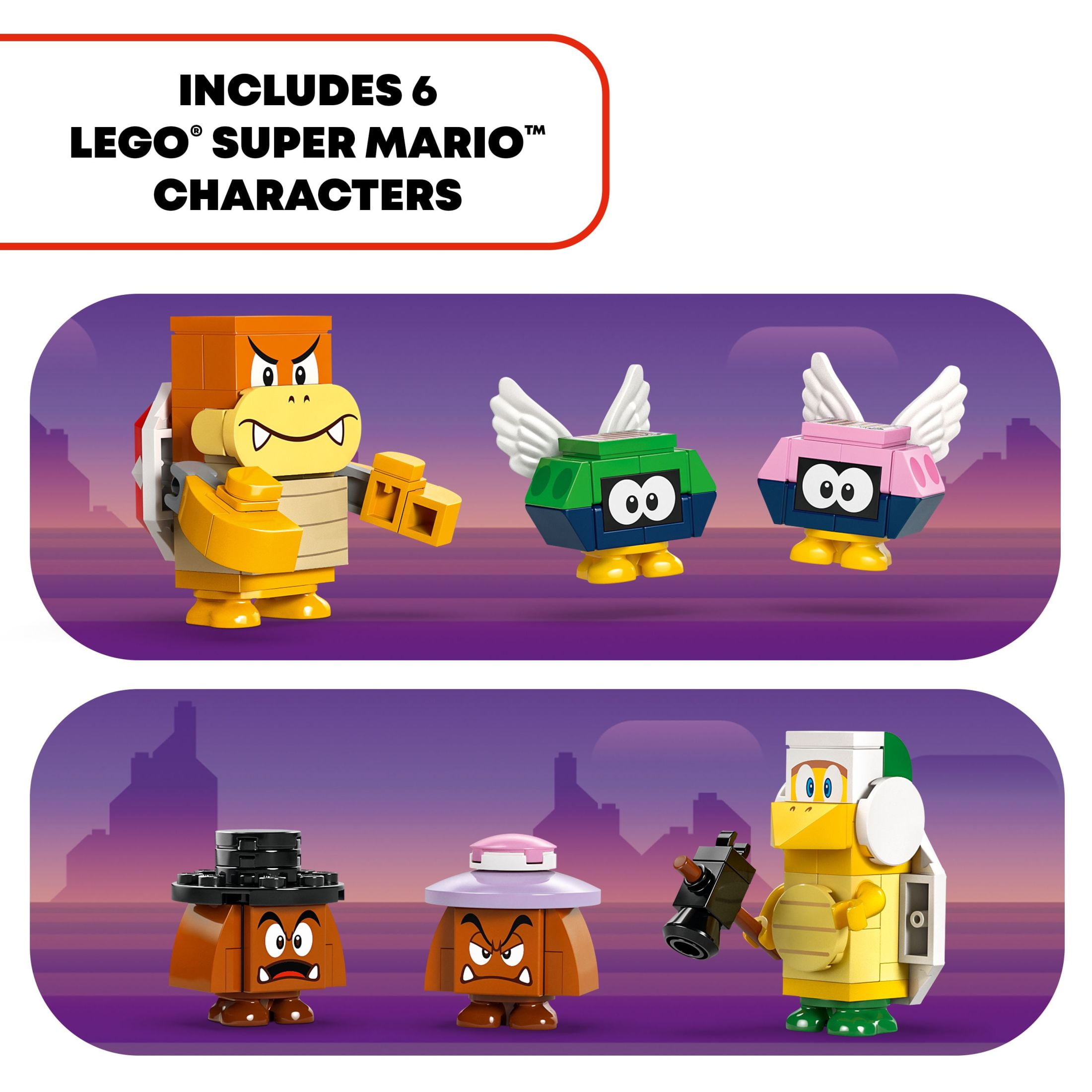 Let the action-packed rides begin with this LEGO Super Mario The Bowser Express Train toy set (71437). A great Nintendo birthday gift for boys, girls and any gamers ages 9 and up, this kids’ adventure playset includes a detailed train, a handcar, 2 stations, a Super Star Block, ? Block and 6 LEGO Super Mario toy figures – a Hammer Bro, Boom Boom, 2 Goombas and 2 Para-Biddybuds. Add a LEGO Mario, LEGO Luigi or LEGO Peach figure (not included) for interactive play. Help them to chase the train in the handcar, operate the spinning platform on the locomotive and activate the cannon wagon’s spring-loaded shooter. Once all the enemies are defeated, trigger horn sounds as they drive Bowser’s Express to the station. Find building instructions in the box or on the LEGO Super Mario app, which also offers creative ideas for ways to build and play with this Nintendo collectible set. Contains 1,392 pieces.