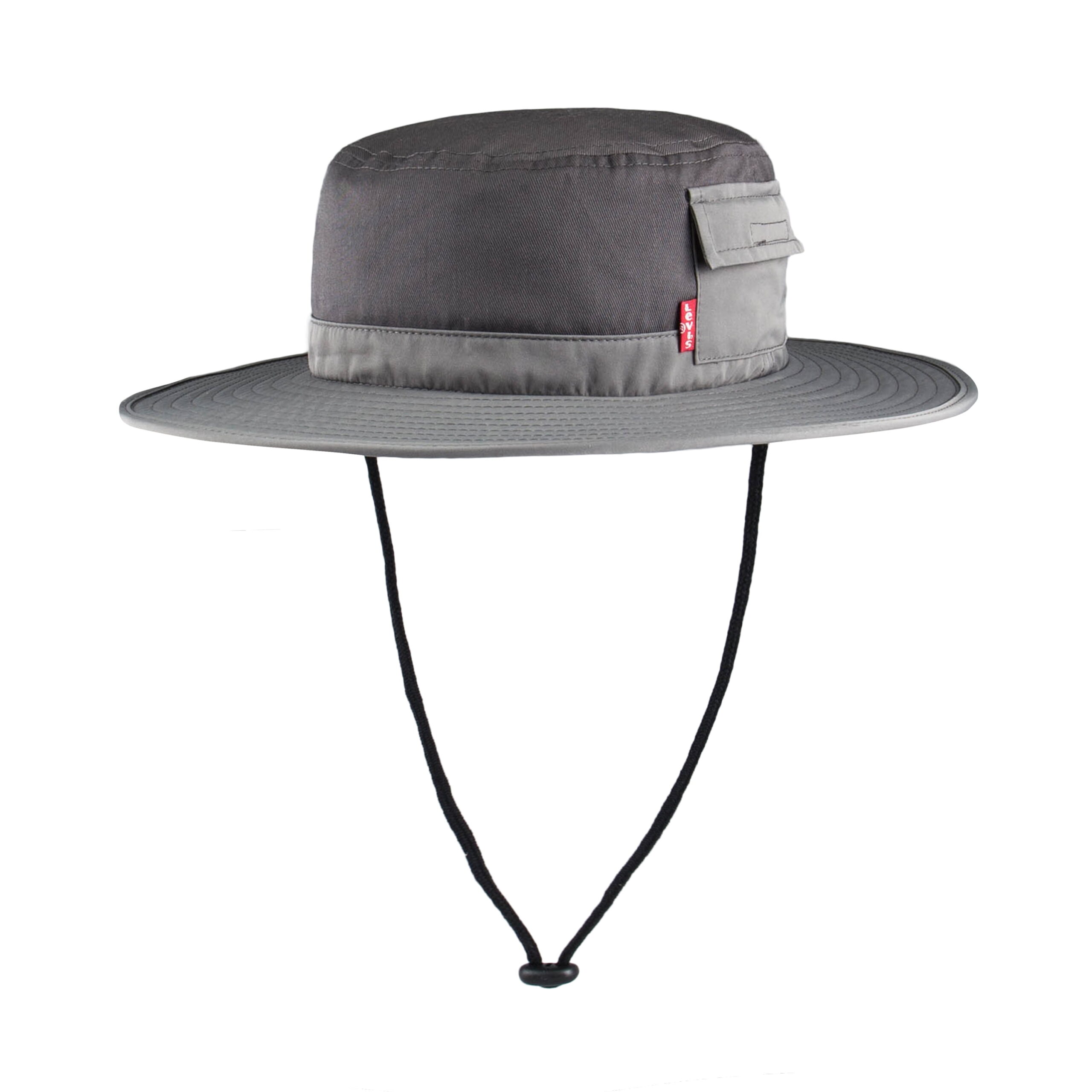 This Levi’s men’s boonie hat with pocket and adjustable toggle is a great accessory option for your next outdoor adventure. Crafted for protection and durability, the lightweight nylon material makes this hat easy to wear all day while helping to protect your head and neck. Unique features include a side pocket to keep small essentials in and the adjutable toggle ensures you get the perfect fit every time.