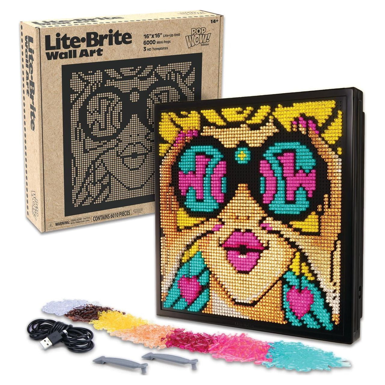 Lite-Brite Wall Art POP WOW- 16″ x 16″, 6,000 Mini Pegs, 3 HD Designs, Great Gift for Ages 14+, Create & Display