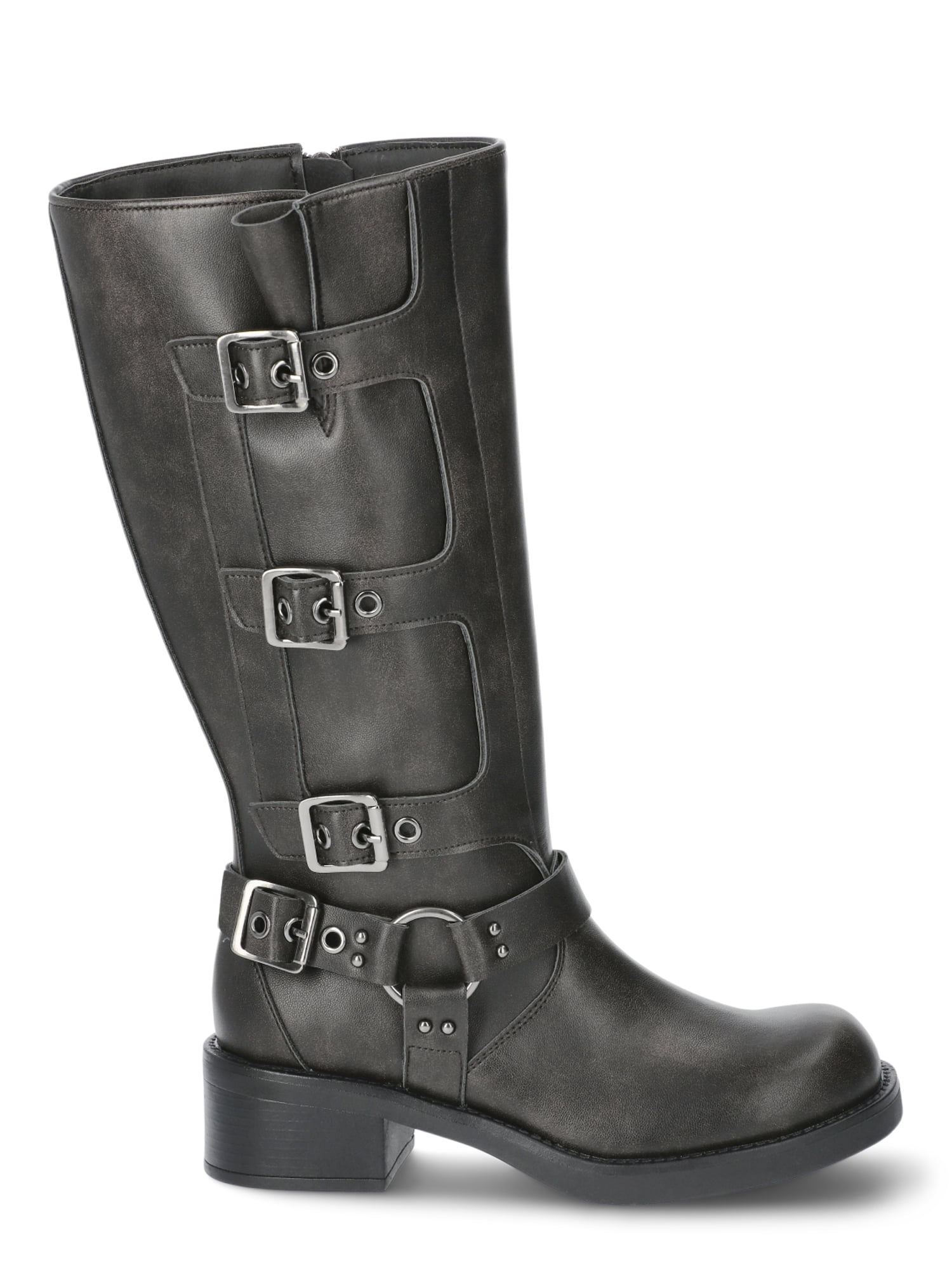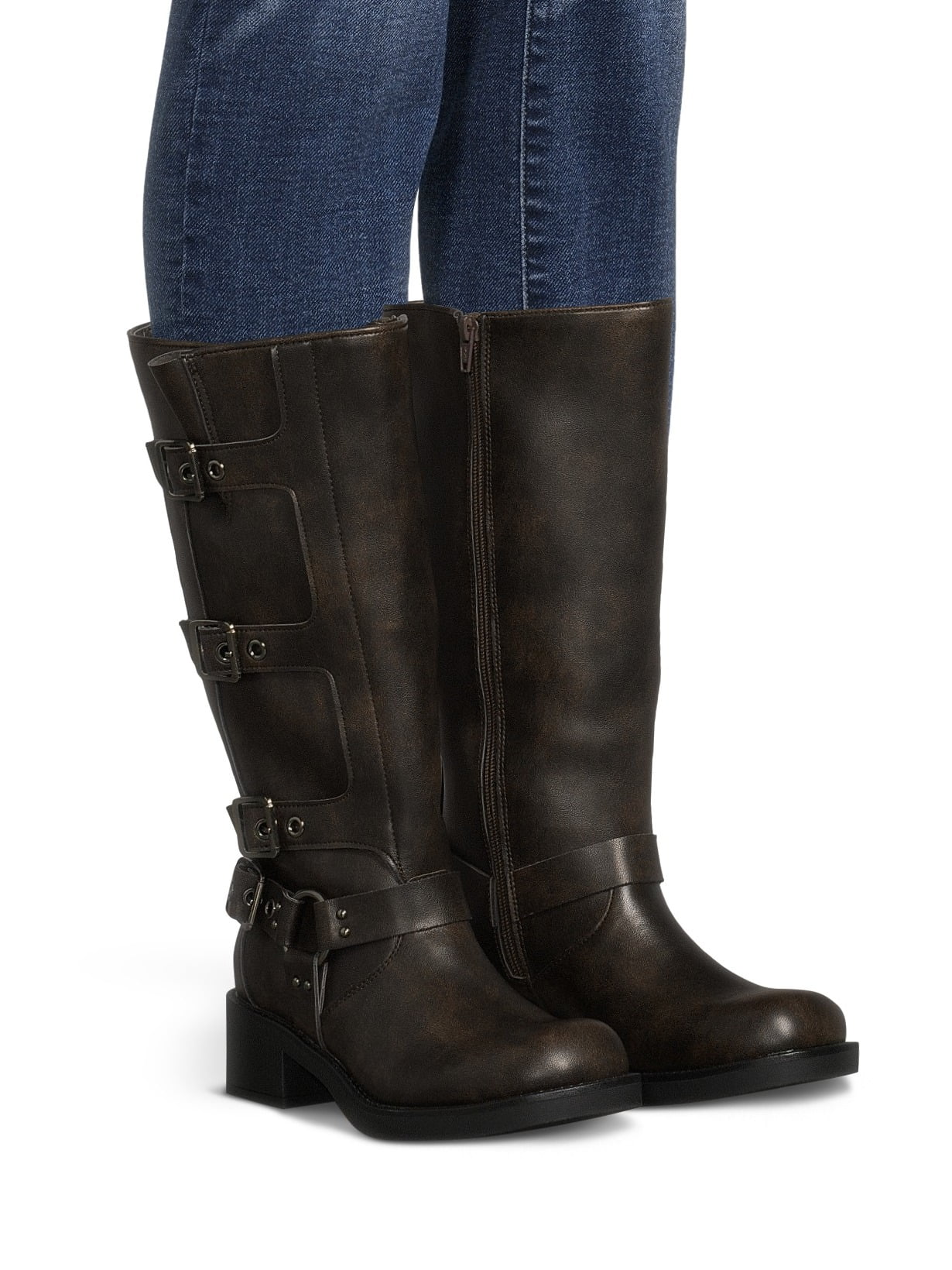Rev up your look with these Rugged Faux Leather Moto Boots from Madden NYC. Inspired by classic biker styles, these boots are designed to go the distance in any wardrobe. Adorned with multiple buckles to enhance both their edgy aesthetic and customizable fit. A harness-style strap wraps around the ankle, reinforcing their rugged appeal. The round toe, sturdy block heel and padded insole offer a comfortable, stylish pair of boots that’ll help take your look up a few gauges. Built for both fashion and function, these boots are made for motorcycle enthusiasts and urban trendsetters alike.