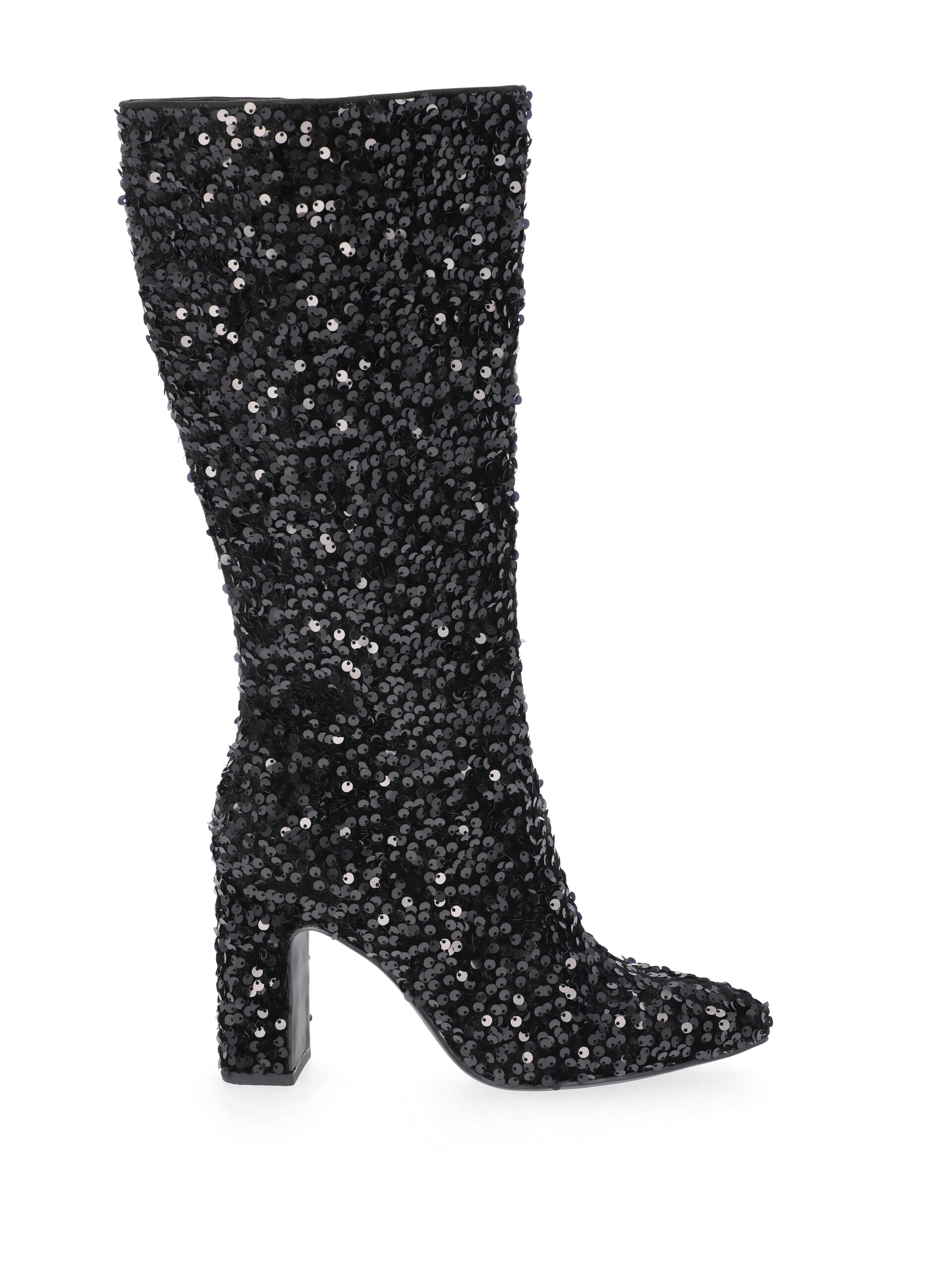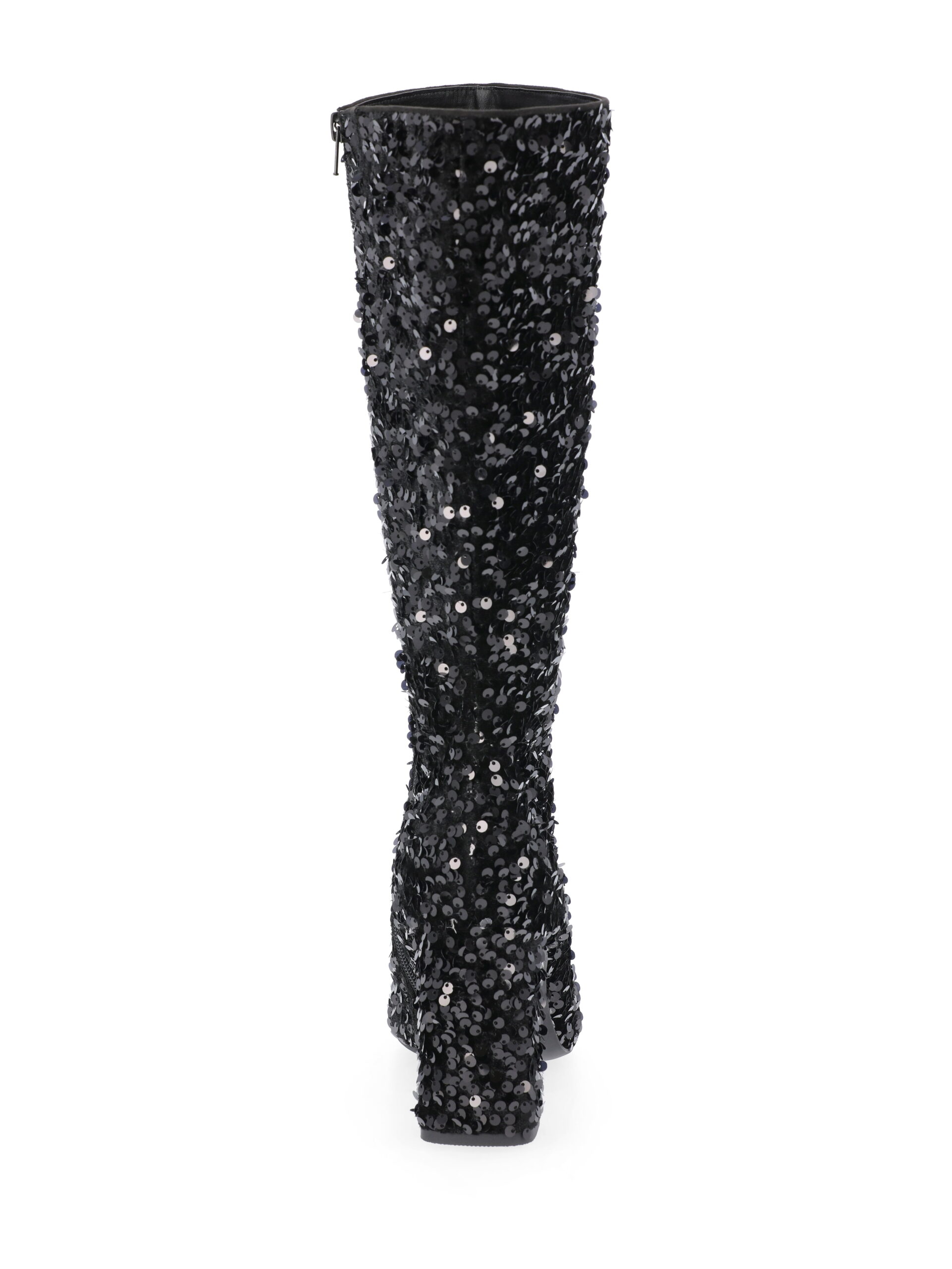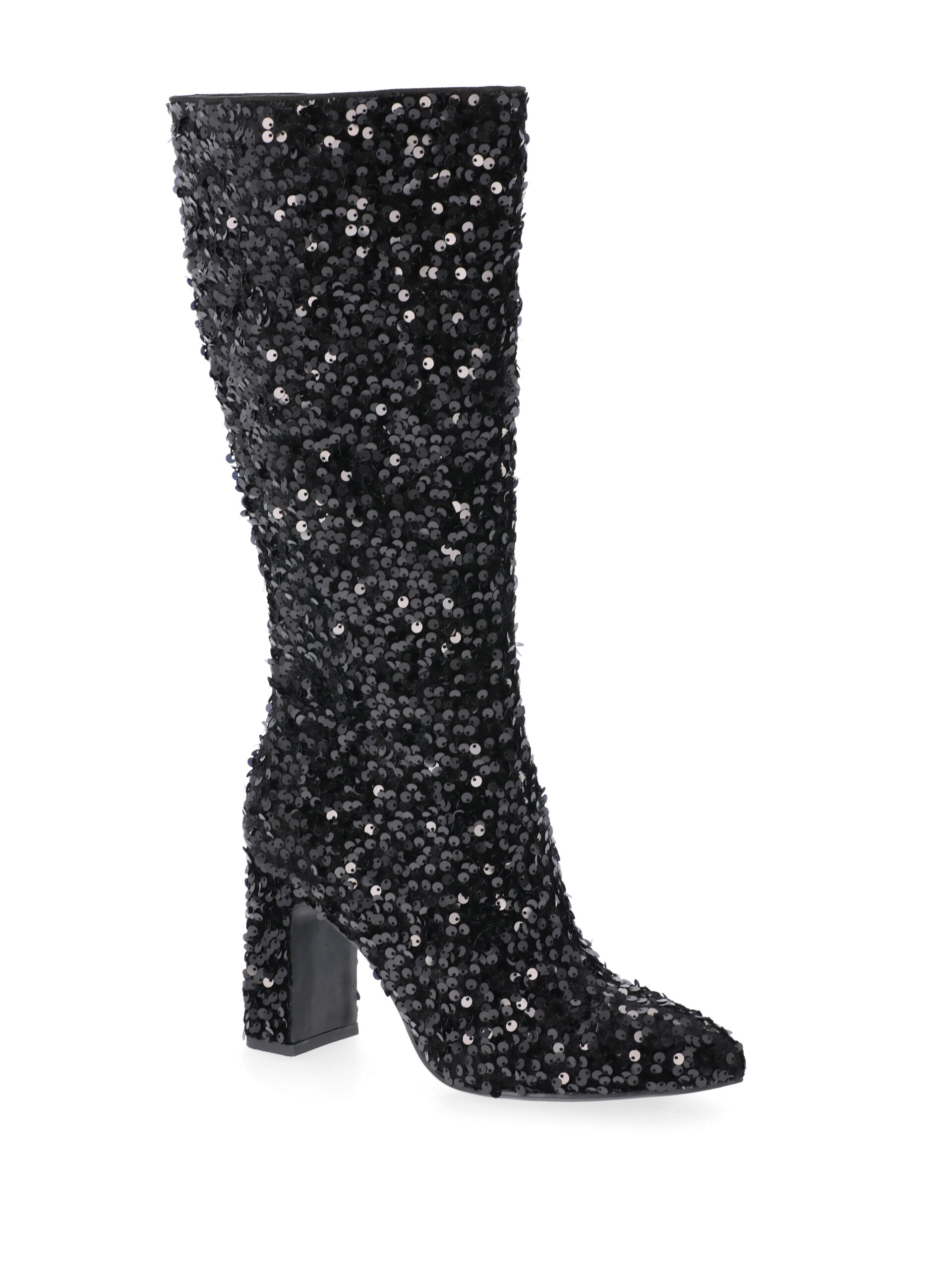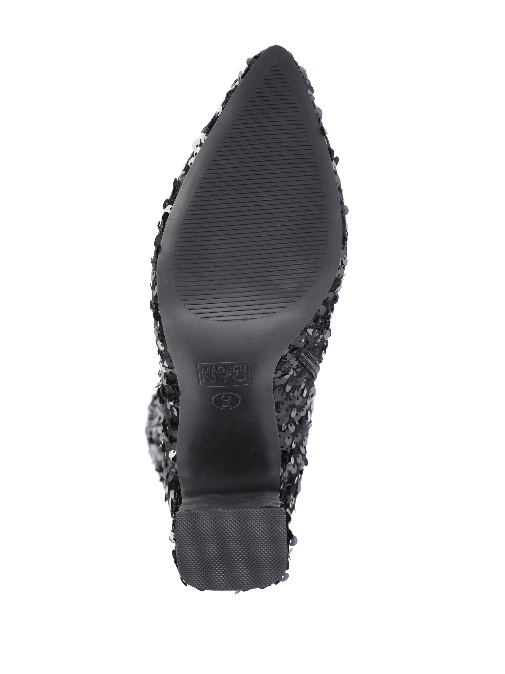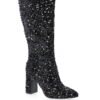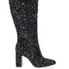 So fabulous and glam. Madden NYC’s Tall Glitter Block Heel Boots are adorned with allover sequins, creating a mesmerizing shimmer effect that catches the light with every step. These boots features an elegantly elongated silhouette with a sleek pointed toe that creates a flattering line. This statement piece, with its side-zip closure for a secure fit, is perfect for fashion-forward occasions like evening events, weekend gatherings or creating a bold focal point for your winter ensembles. These boots represent classic elegance and modern glamour in one eye-catching design.