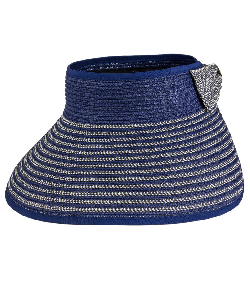 MAGID WOMEN’S PAPER STRAW ROLL UP SUN VISOR WITH VELCRO BOW