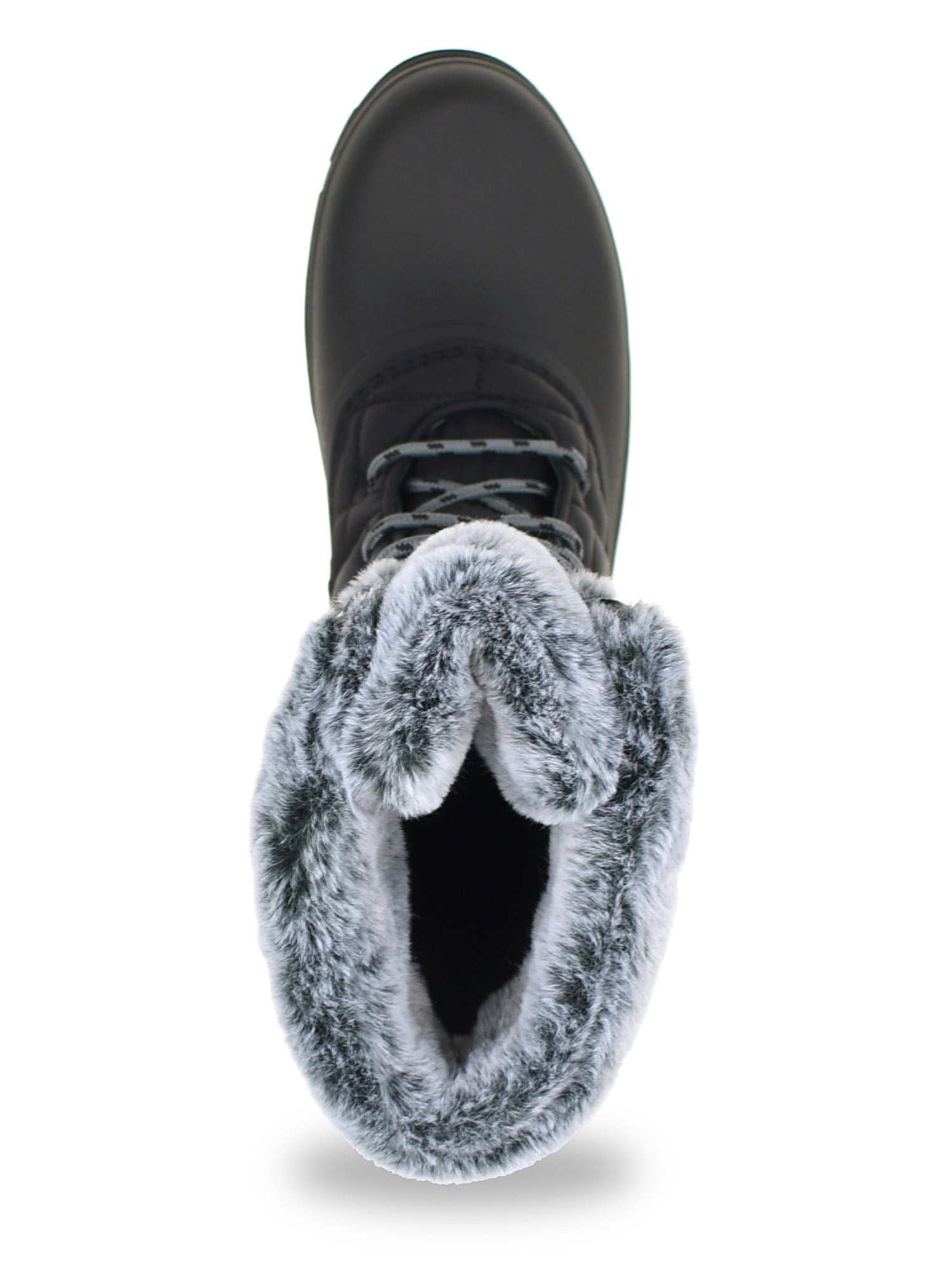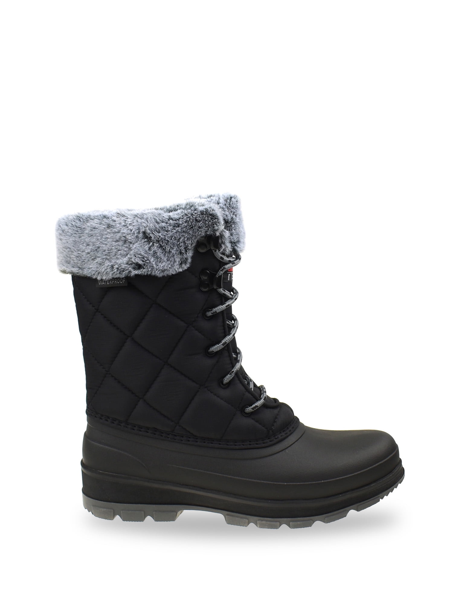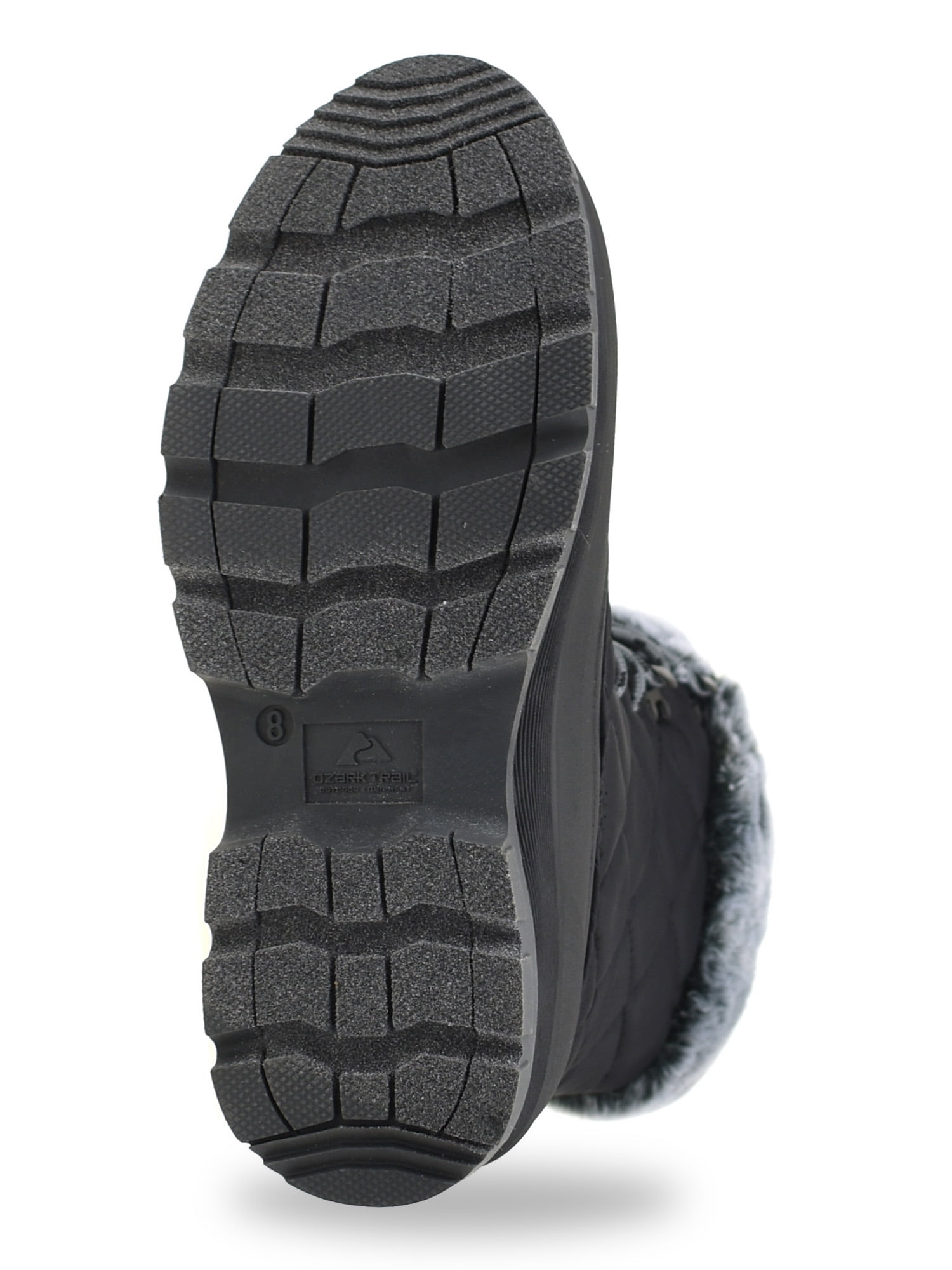 Conquer winter in style with the Ozark Trail Women’s Quilted Lace Up winter boot. Winter weather? No problem. The Ozark Trail Quilted Lace-Up Waterproof Winter Boot is here to keep you warm, dry, and stylish no matter the conditions. Designed for the woman who doesn’t let the cold slow her down, these boots are temperature rated to -20F thanks to 3M B200 thinsulate lining and waterproof through the use of Cosmo Hydro Guard waterproof membrane. The faux fur collar adds a fashionable touch and memory foam offers comfort in every step. Imported. Made in China keep your feet warm and dry. The cushy memory foam sock adds comfort to every step. The sustainable laces are crafted with 100% recycled polyester materials. Imported.Made in China.
