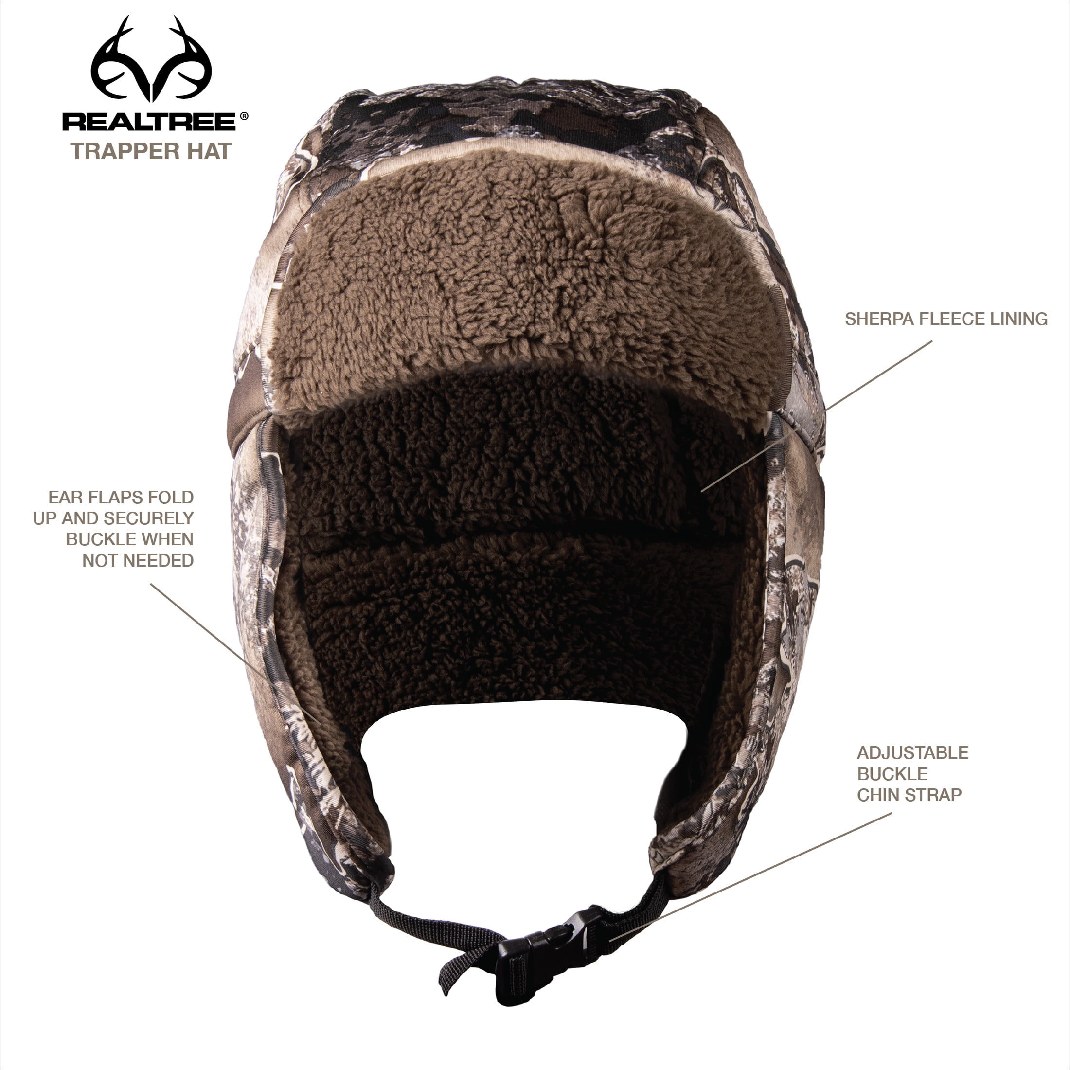 Fend off cold temperatures and biting winds with the Realtree Excape Men’s Hunting Trapper Hat (Adult). It’s hood-like design encompasses your head and covers your neck so you can withstand brutal conditions. In frigid, unforgiving weather, the ear flaps are a welcome attribute, and you can secure them in place with the integrated and adjustable buckle chin strap. Unbelievable comfort and warmth are the products of the sherpa fleece lining, while the soft and pliable outer fabric naturally molds to your head shape when you wear the hat. Whether checking the trapline or waiting out a late-season whitetail, the Realtree Excape Trapper Hat is the perfect partner.