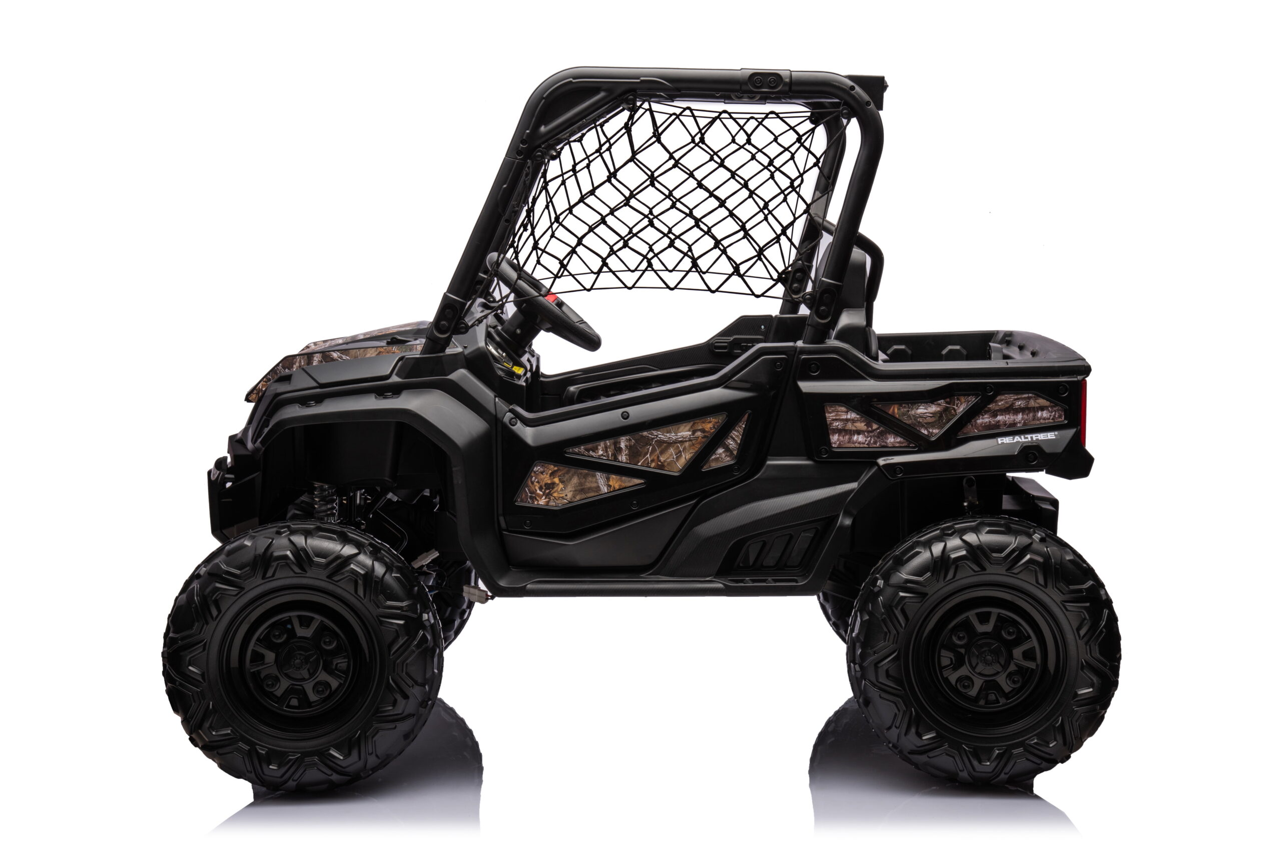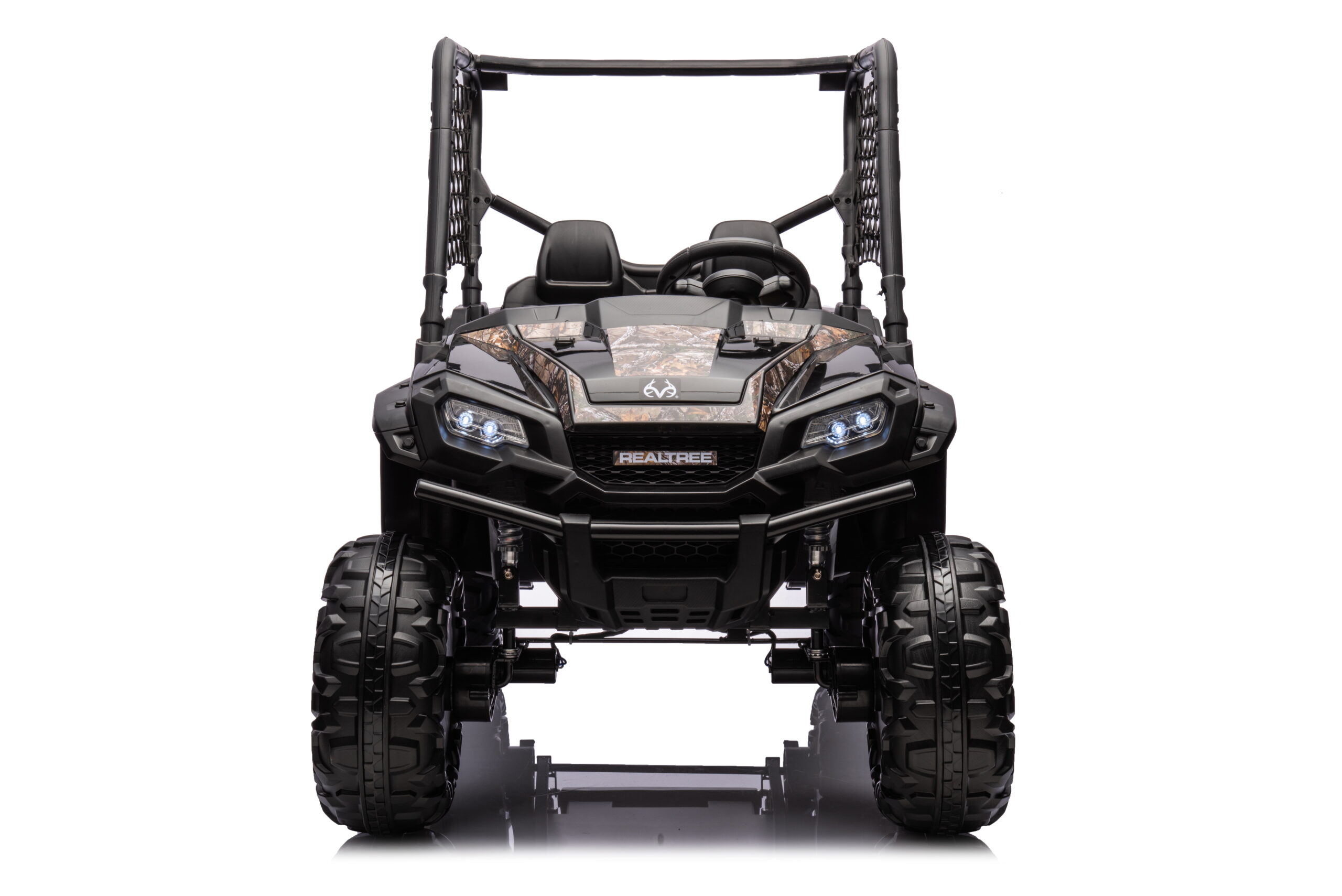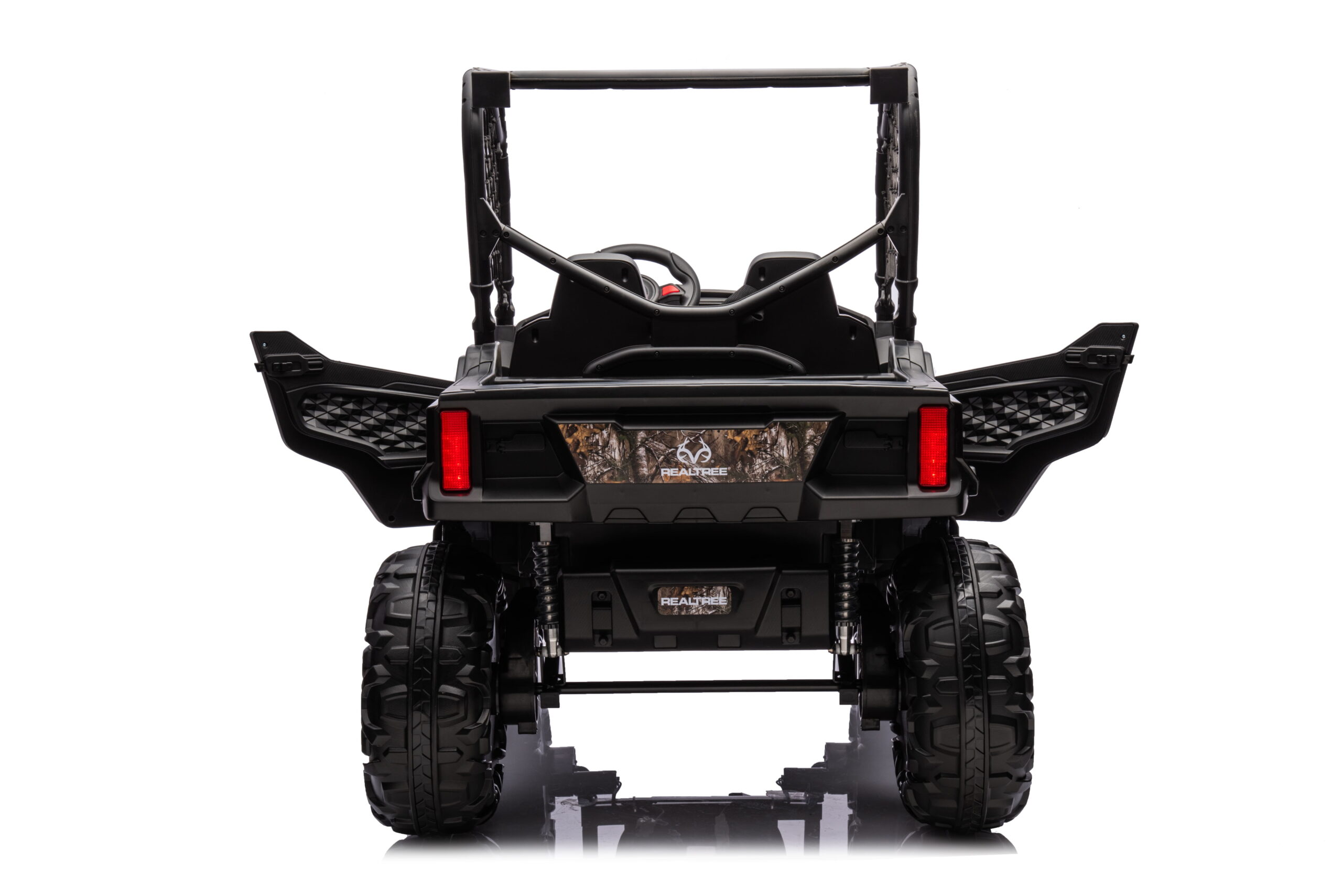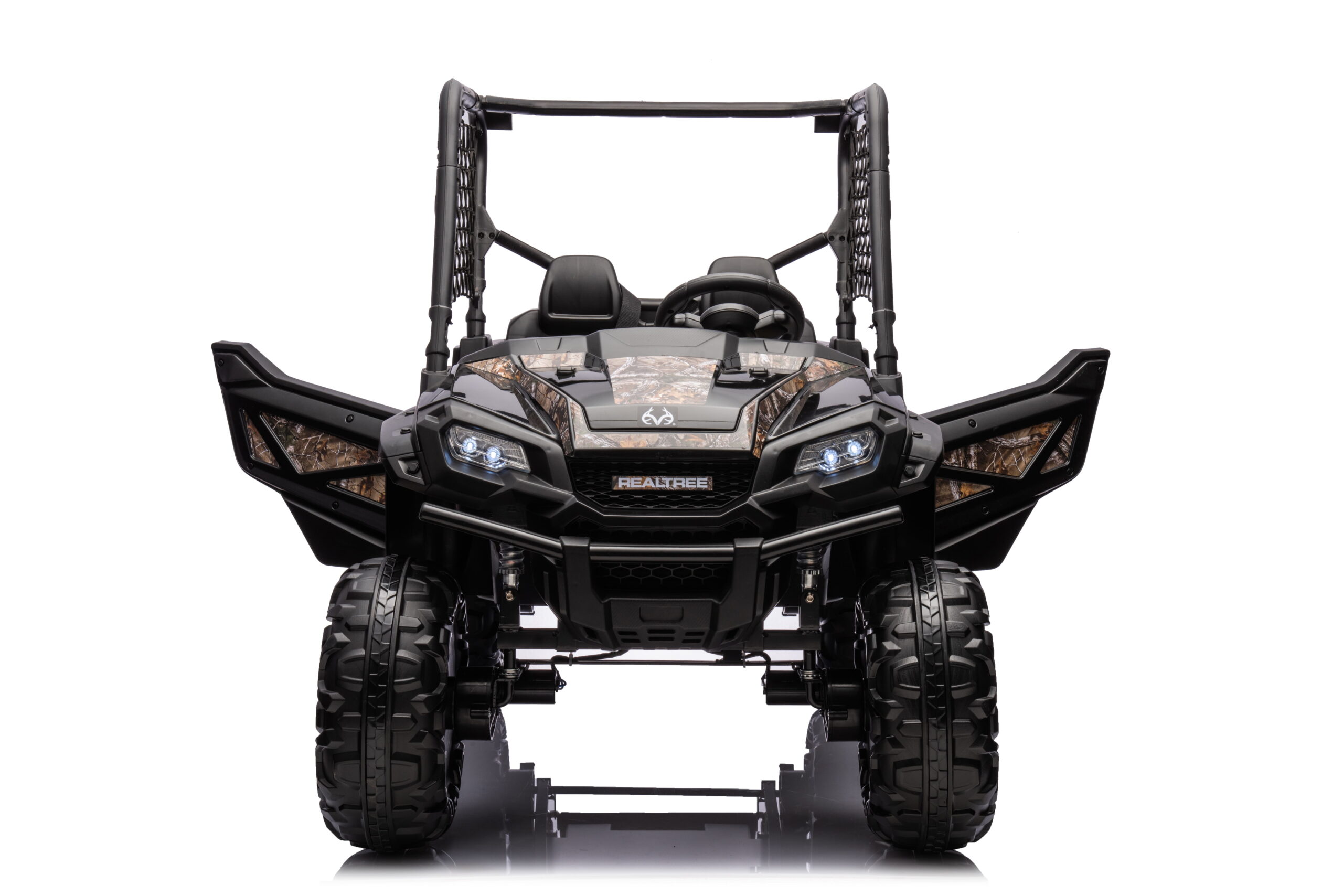 Surprise your little one with our officially licensed Realtree-XD 24V Powered Ride-On UTV and watch them enjoy a realistic experience of riding UTV. This two-seater Realtree UTV has a slow start design, ensuring that the ride is smooth and safe with a maximum speed of 5 MPH. The double door, working horn, headlights, and a multi-purpose MP3 player on the dashboard make riding even more fun. The four-wheeler UTV comes with rear storage space and shovel, providing your kid a complete outdoor experience. It also has a 2.4 GHz remote control for parents with various options to control their kid’s rides and ensure their safety and security. It is the perfect ride-on for children aged three to eight years to have an adventurous ride in all parks, sidewalks, and backyards. Make playtime special with the Realtree-XD 24V Powered Ride-On UTV.
