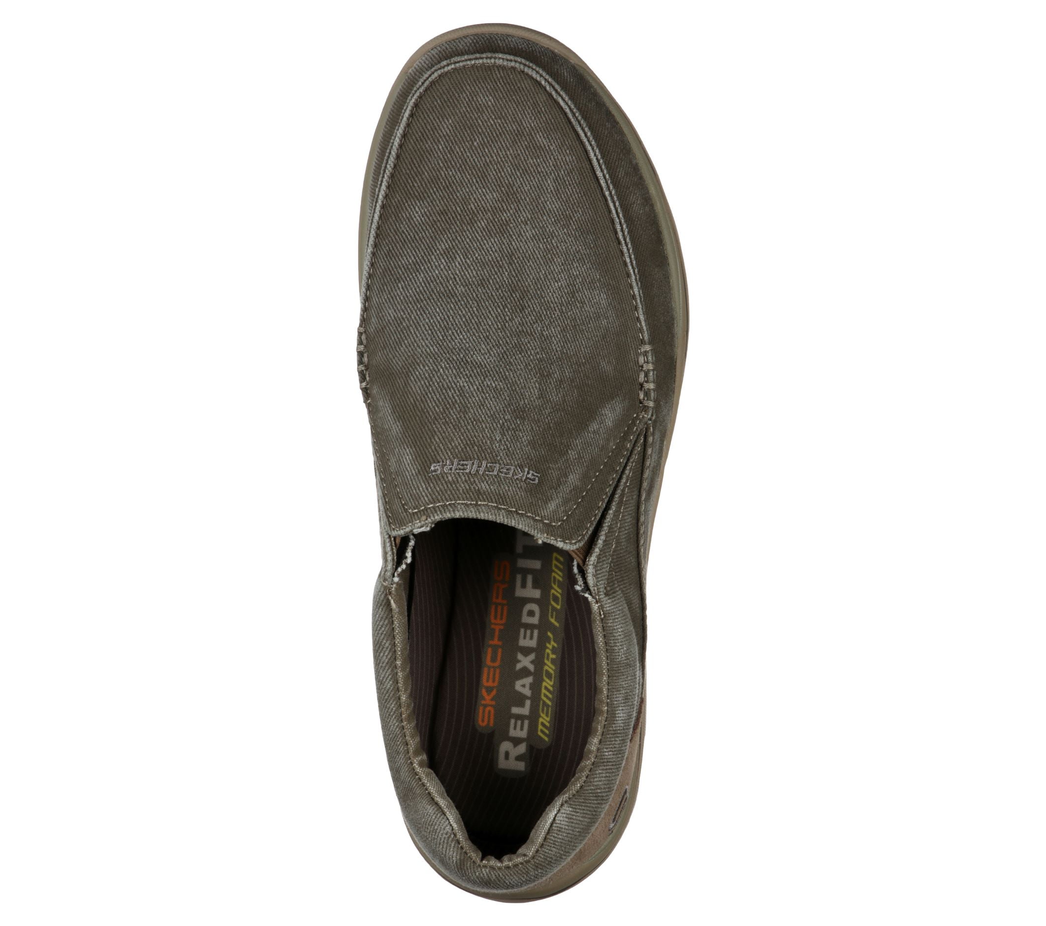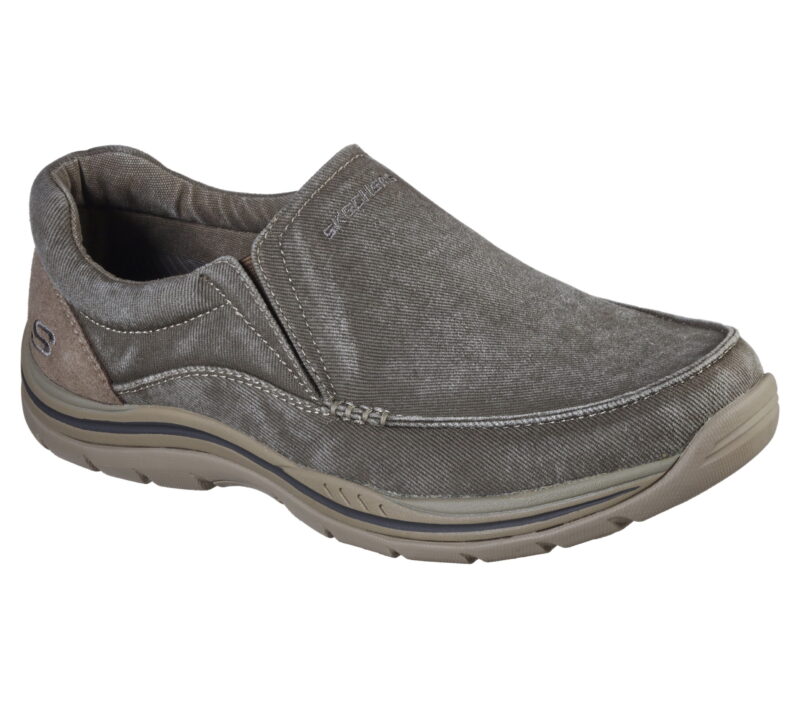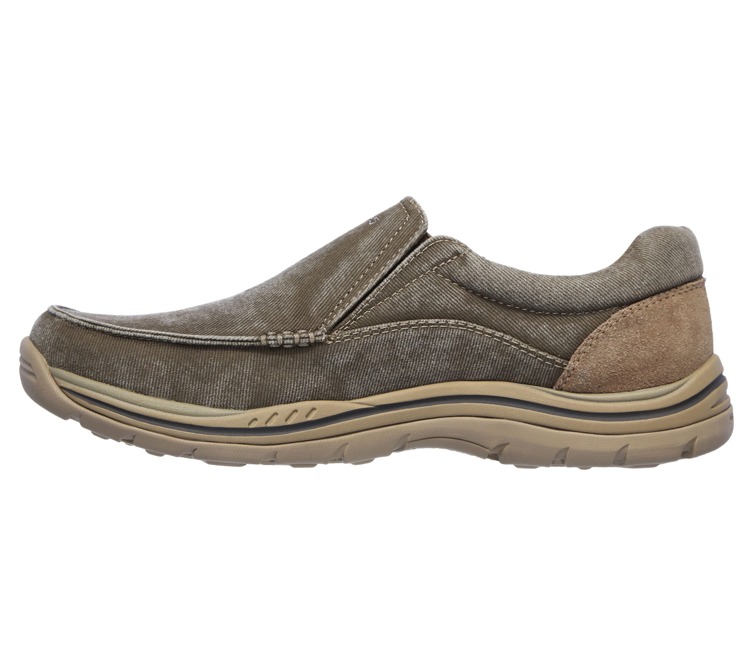 Find your island of style and comfort with the SKECHERS Relaxed Fit: Expected – Avillo shoe. Soft washed canvas fabric and suede upper in a slip on casual comfort loafer with stitching and overlay accents. Soft fabric shoe lining. Relaxed Fit design for a roomier comfortable fit. Memory Foam topped cushioned comfort insole. Shock absorbing midsole with contrast color stripe accent. Flexible rubber traction outsole.