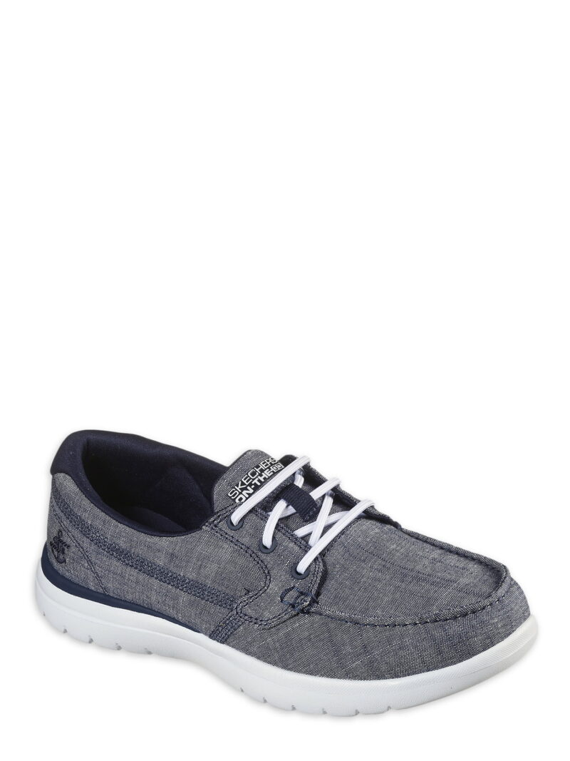 Iconic design and premium materials fuse with innovative Skechers Performance technology to achieve the ultimate in comfort and style. Skechers On the GO Flex has a colorful heathered finish soft linen fabric upper in a slip on casual boat shoe design with Air Cooled Goga Mat insole.