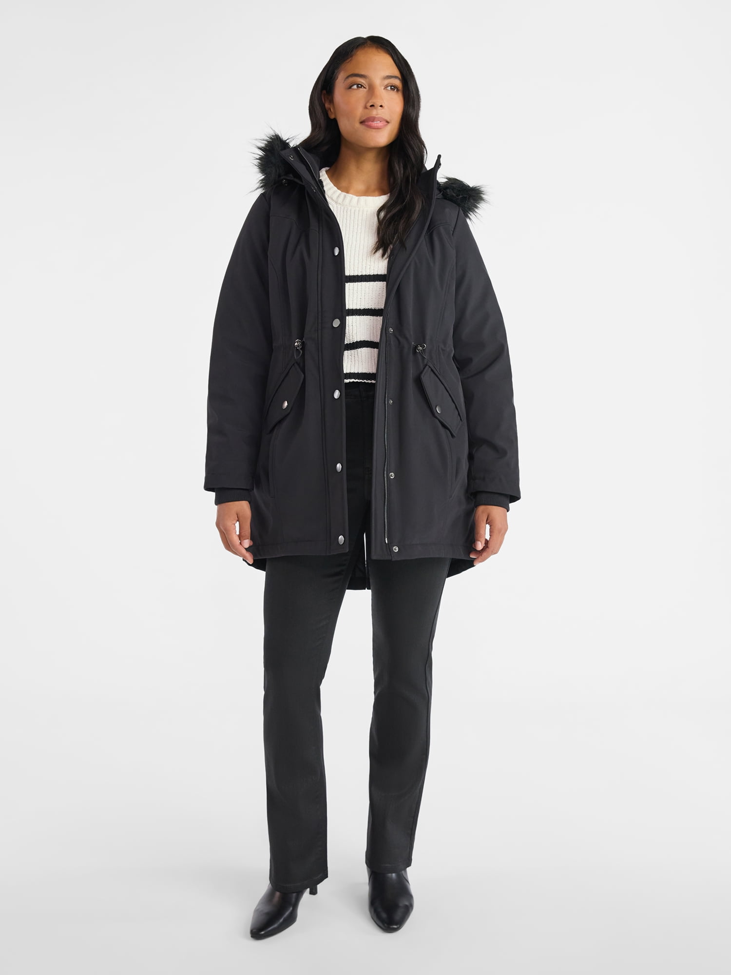 Keeping it cozy and stylish with Time and Tru’s Hooded Anorak Jacket. This heavyweight coat is just what you need when temps start to drop, it features plush lining, adjustable bungees at the waist and a faux-fur trimmed hood to help protect you from winter winds. Front pockets let you stash your stuff or warm your hands and the just-right length works with any outfit. Only at Walmart.
