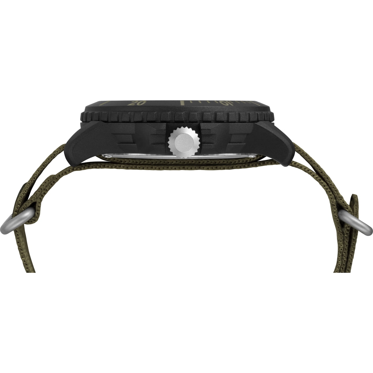 Charged by any light with a two-month power reserve, our Expedition Gallatin Solar is a sustainable, adventure-ready companion powered by natural energy. Inspired by the northern edge of the U.S. Rockies, this solar-powered watch is well-built for the outdoors with its green fabric double layer slip-thru strap, black resin case and black dial.