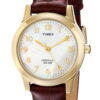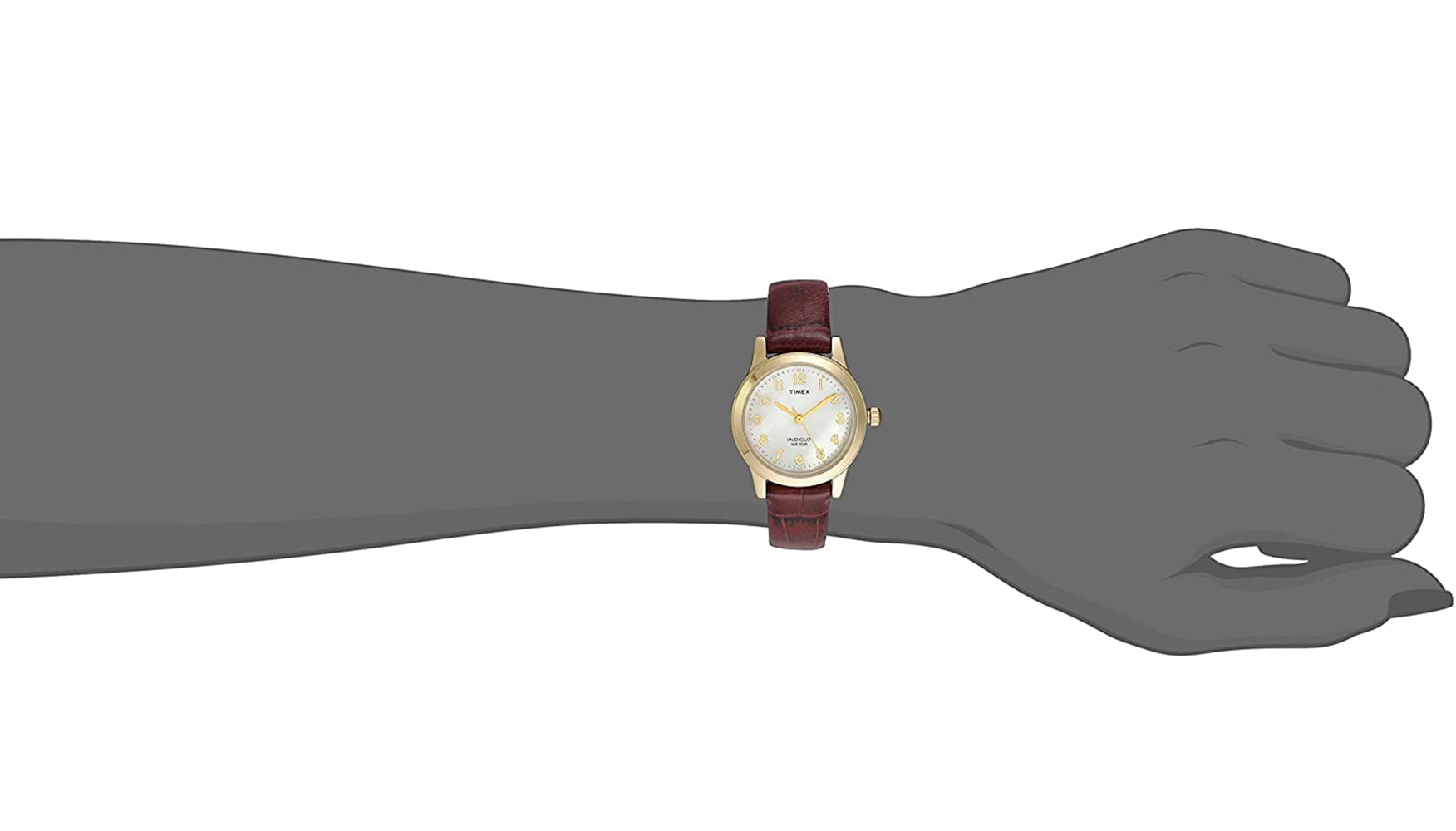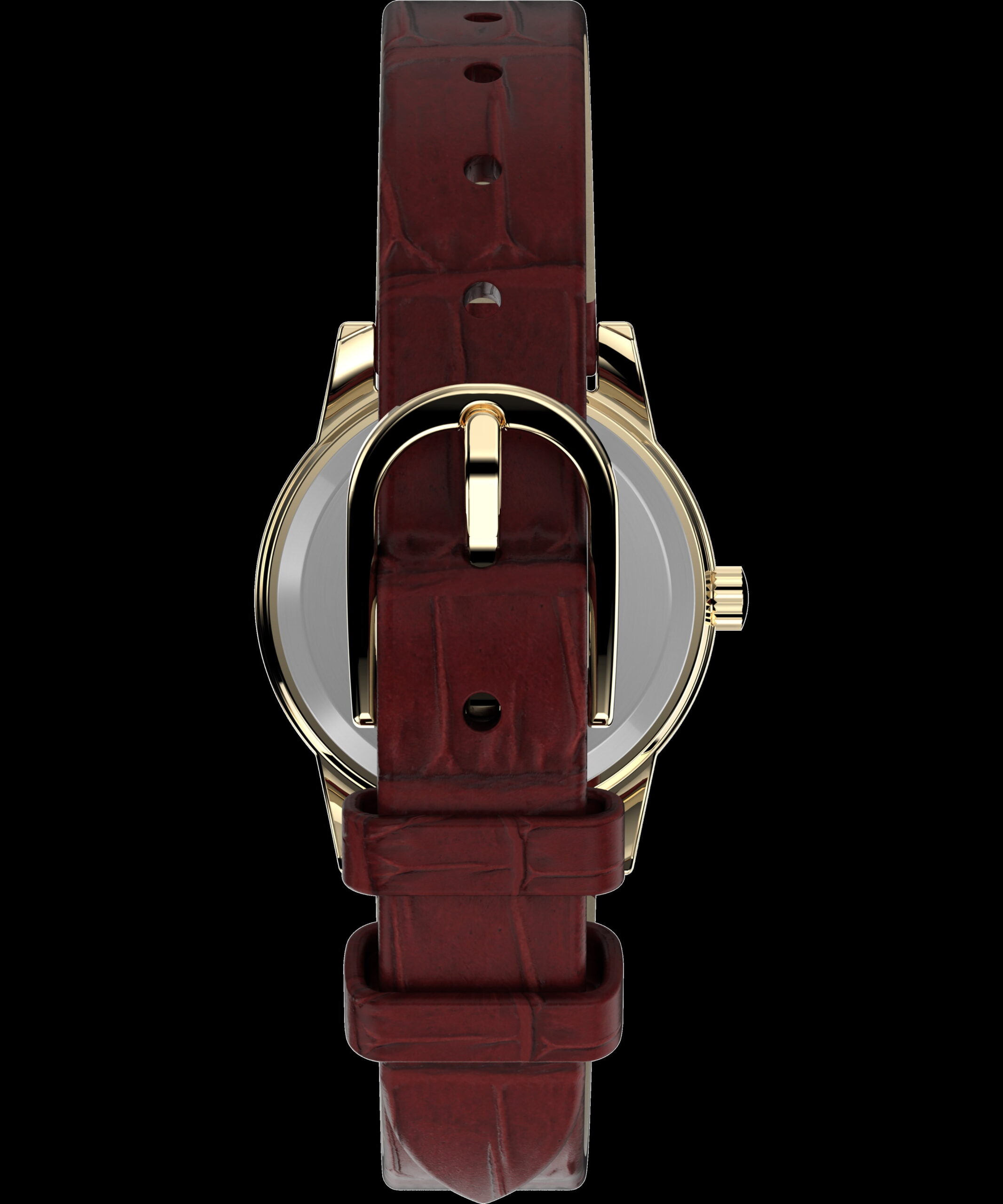 Timex Women’s Essex Avenue Gold/Burgundy/MOP 25mm Dress Watch, Leather Strap