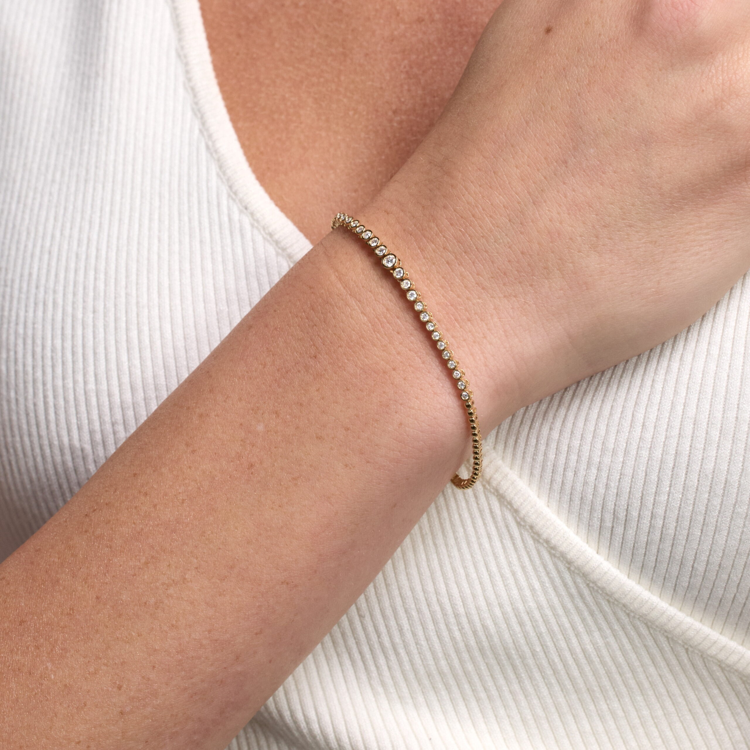 Elevate your style with our stunning Unique Moments 0.50 Ct Bezel Set Round Lab Grown Diamond Chain Bracelet in Sterling Silver (H-I, SI-I1). Crafted with utmost precision, the dazzling lab-grown diamond effortlessly captures the light for a captivating sparkle. The bezel setting adds a modern touch to this delicate piece.