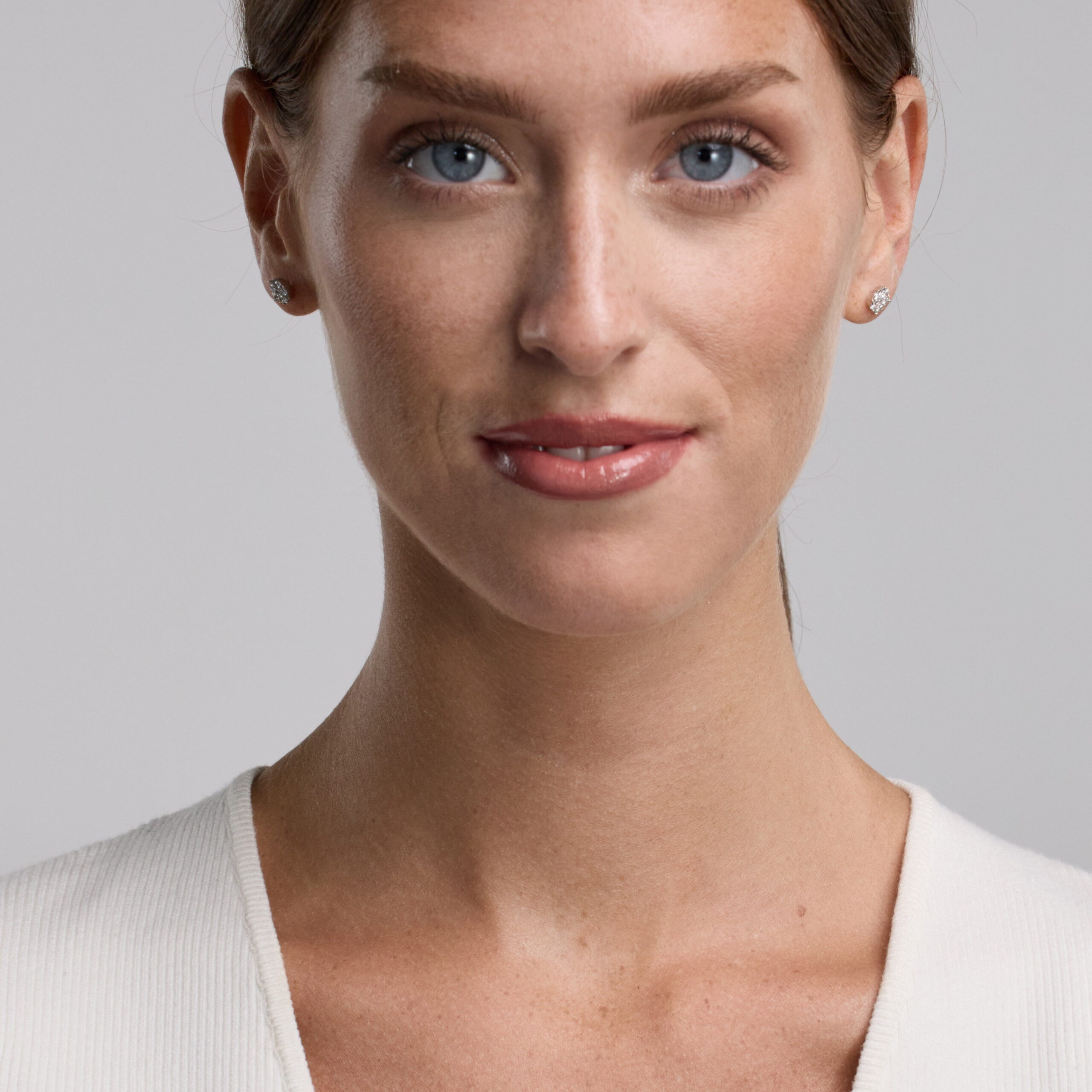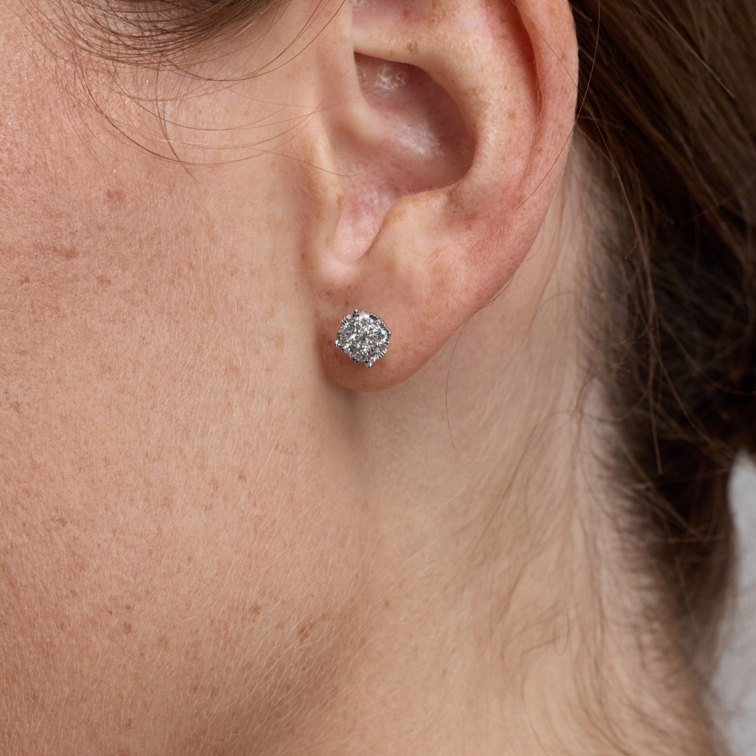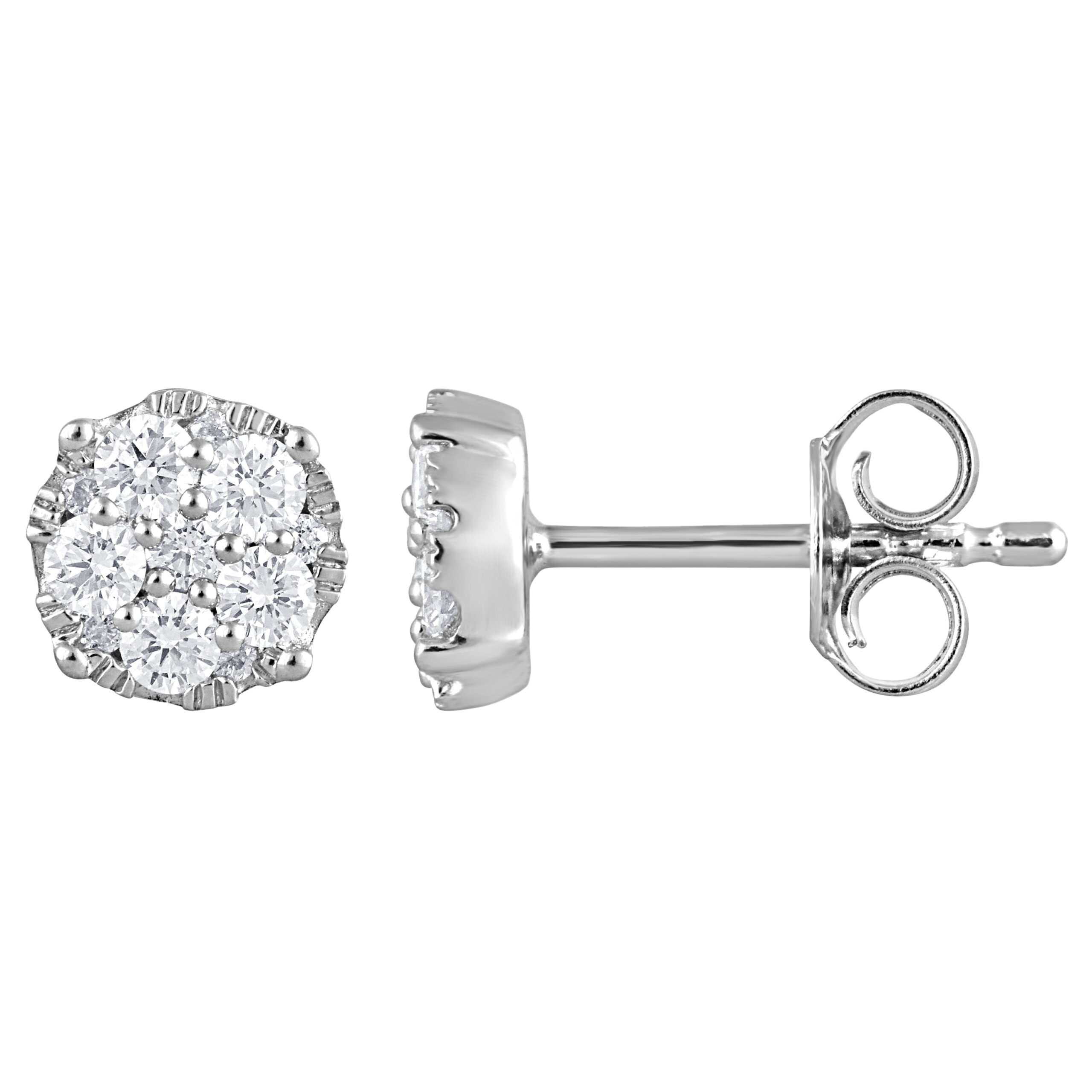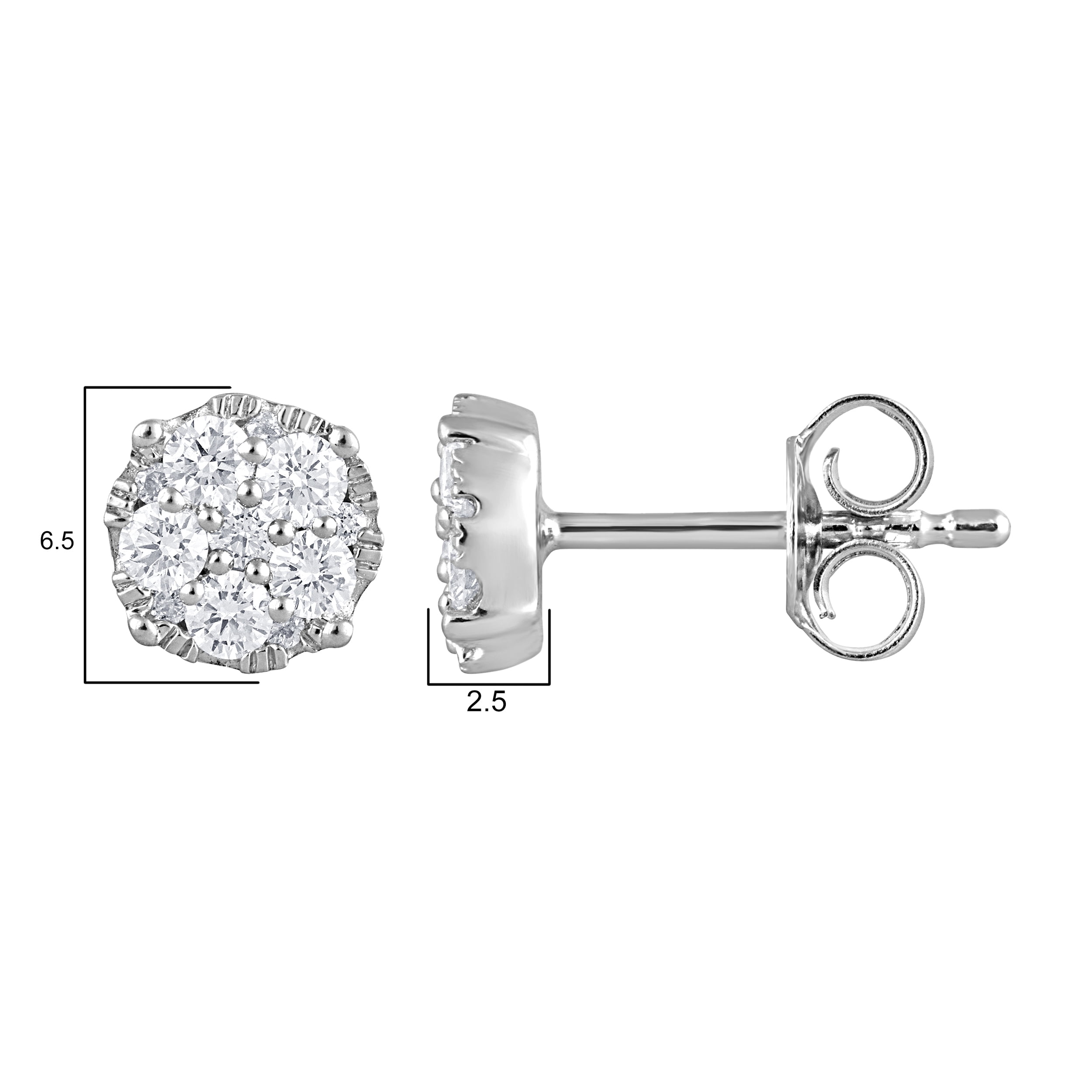 Experience the allure of these stunning Unique Moments 0.50 Ct Round Lab Grown Diamond Cluster Stud Earrings in Sterling Silver (H-I, SI-I1). Meticulously prong set, they showcase a cluster of beautifully crafted lab-grown diamonds that radiate brilliance and charm. Made with utmost precision and attention to detail, these earrings are perfect for the modern woman who values both luxury and sustainability. Whether attending a formal event or simply wanting to elevate your everyday attire, these earrings are the epitome of sophistication.
