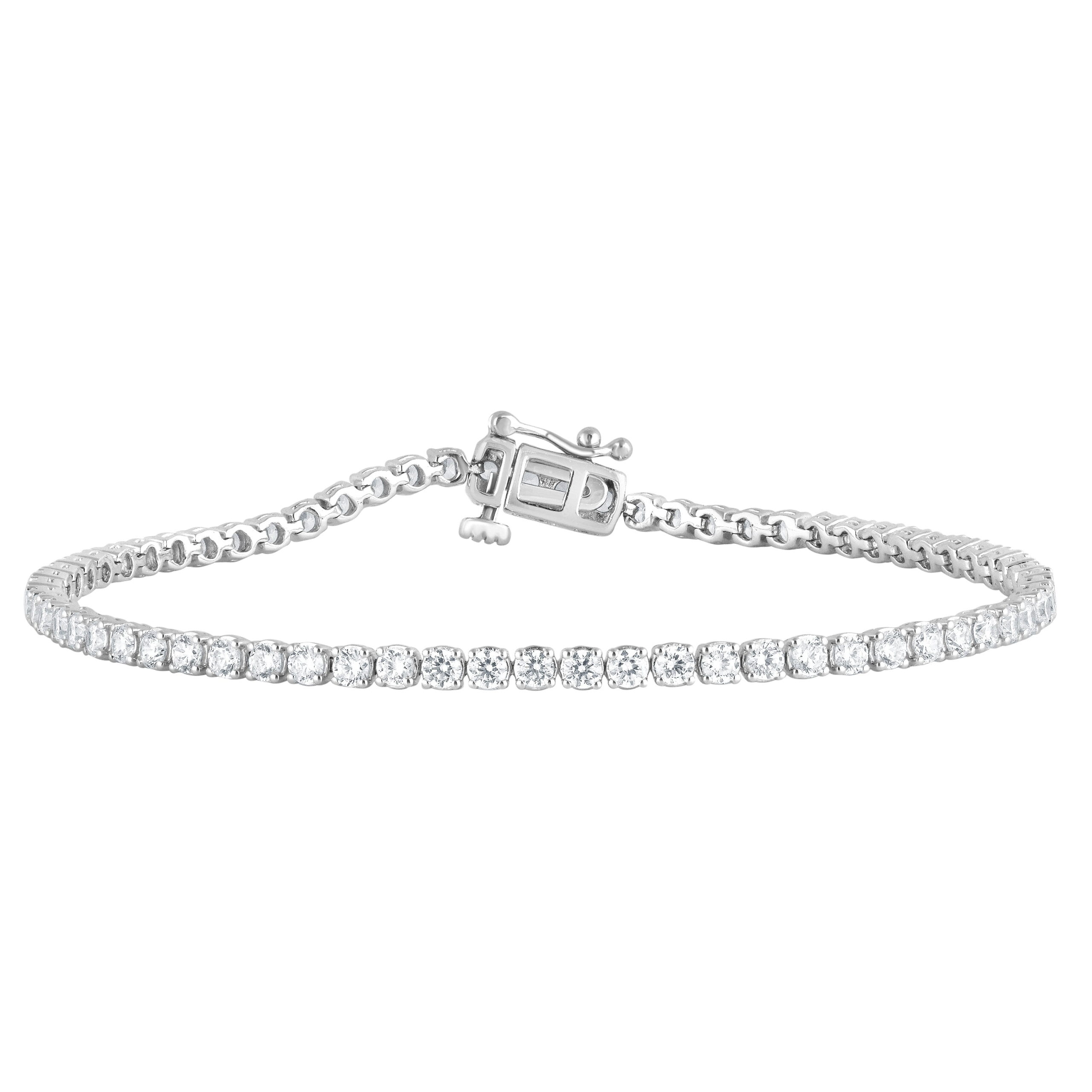 Celebrate life’s special moments with the Unique Moments Women’s 3 Carat T.W. Round Lab Grown Diamond Tennis Bracelet in Sterling Silver White Gold. Featuring diamonds with Colour/Clarity: J, SI1.This stunning piece is a timeless gift for your mother, girlfriend, or friend. Perfect for bridal parties, anniversaries, or everyday elegance, it combines luxury and sustainability. This exquisite adornment effortlessly cradles the essence of grace and timeless beauty in every sparkling facet. Each lab-grown diamond is thoughtfully selected to evoke the opulence of a luxurious lifestyle