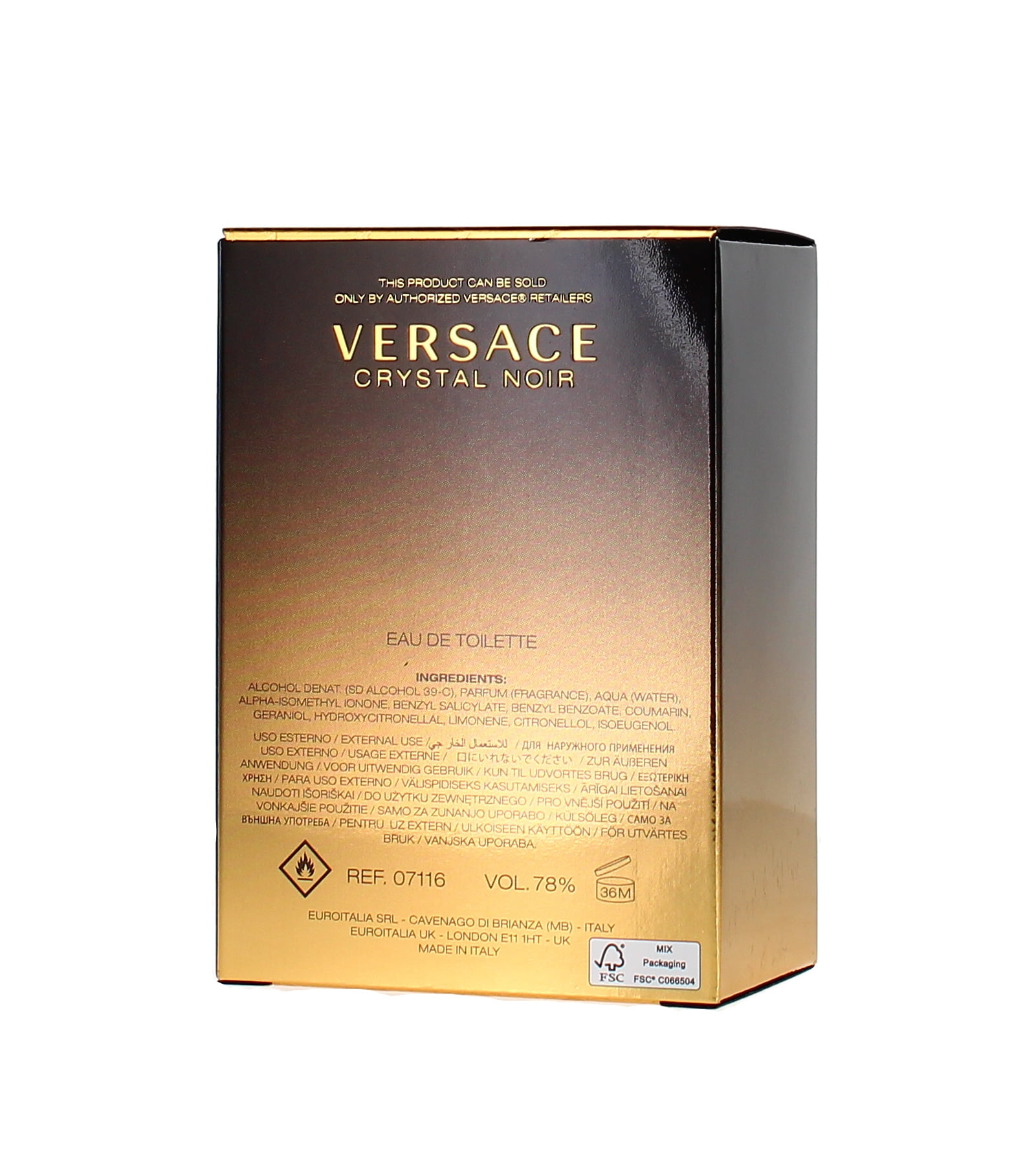 Versace Crystal Noir Women’s Ea De Toilette in the 1 oz size is a captivating and seductive fragrance that embodies the allure of the mysterious and confident woman. This perfume for women opens with luminous top notes of ginger, cardamom, and pepper, it immediately intrigues with its spicy and aromatic blend. The heart of the fragrance reveals a rich and creamy floral bouquet of orange blossom, peony, and gardenia, adding a touch of femininity and opulence. Finally, the base notes of amber, musk, and sandalwood create a warm and sensual foundation that lingers delicately on the skin.