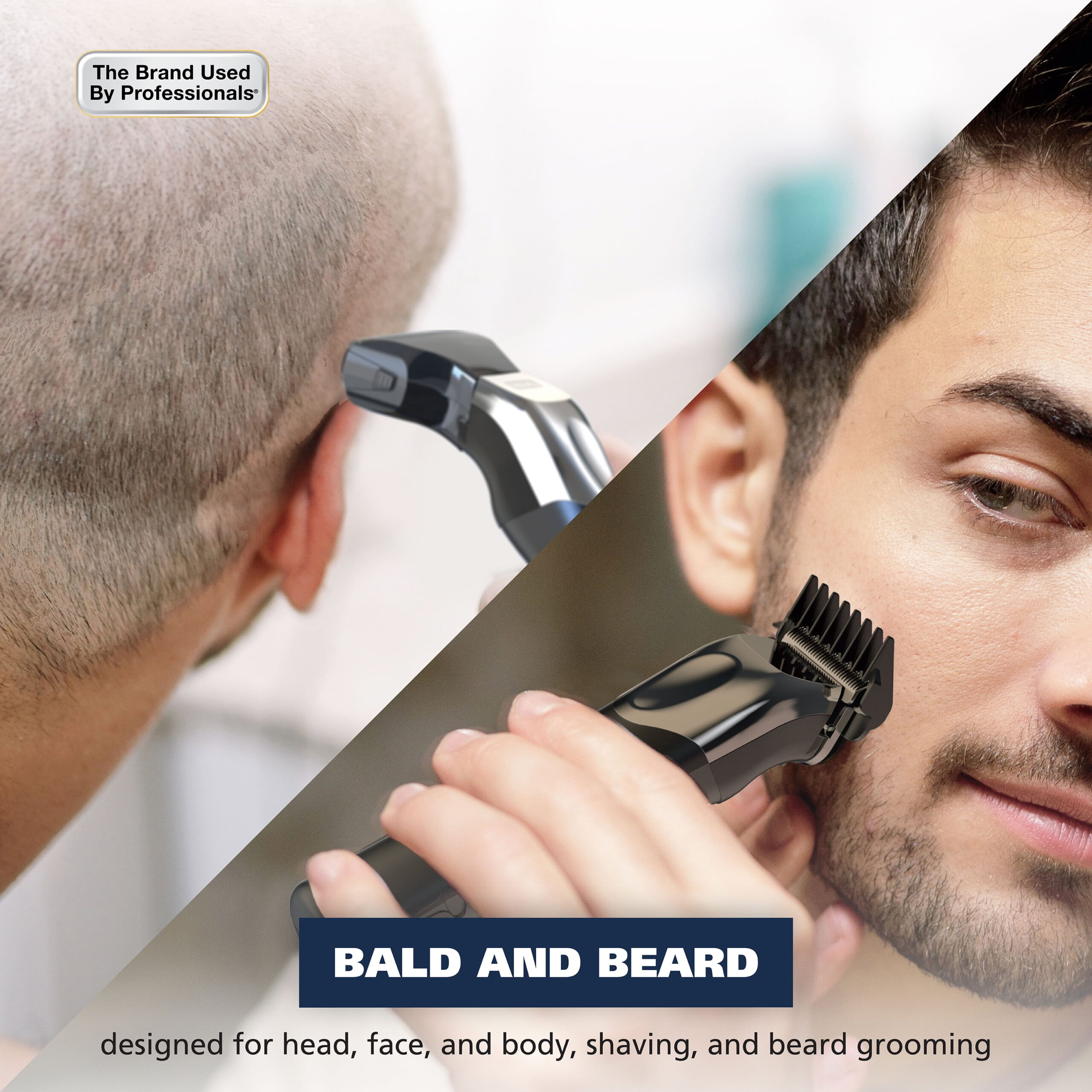 Wahl Bald & Beard Rechargeable Balding System for men. Powerful full-size precision trimmer with standard cutting lengths, stubble to full or long cutting lengths, fade and touchups. Full size flex foil technology and long hair cutter, moves with you and cuts every hair for a smooth, close, more comfortable shave. Rinseable blades and shaver for easy clean up. Convenient USB charging . Wahl Lithium Ion technology provides 3 minute quick charge for 3 minute run time or 3 hour full charge for 3 hour run time.