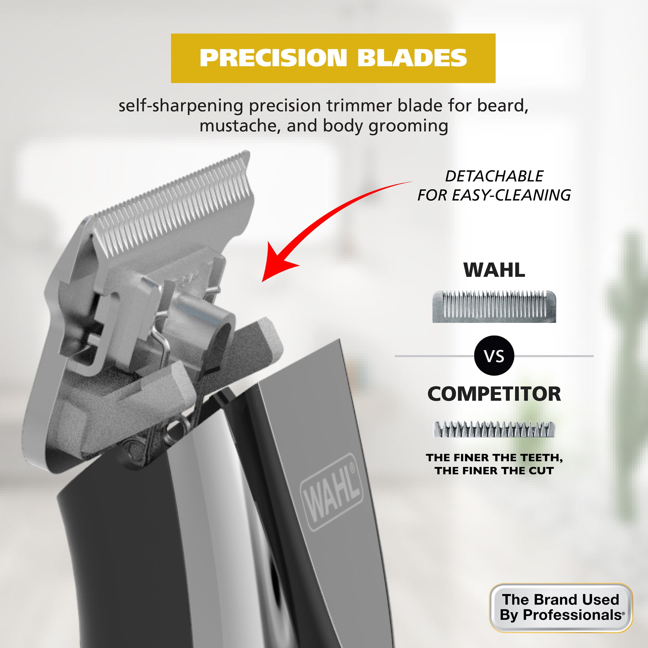 The Wahl Premiere Series Beard Trimmer for men features a rechargeable Lithium-Ion beard trimmer with convenient USB charging. The trimmer includes our self-sharpening T blade that stays sharper longer compared to the competition. The beard trimmer has a smart led charging indicator to let you know when the charge is done. The Lithium-Ion rechargeable battery runs up to 2.5 hours on a single charge. You will be able to create any beard style you want with the included guide combs for 19 different cutting lengths. The Wahl Elite Beard Trimmer makes a great gift for the male in your life and with our 5-year limited warranty, you can be confident you are buying a high-quality beard trimmer.